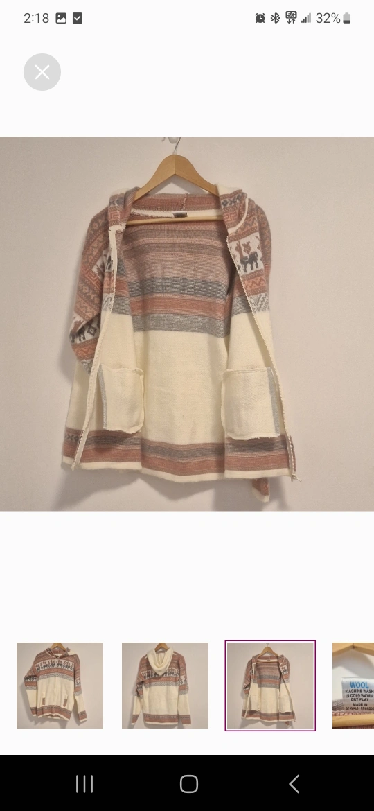 Cozy wool zip-up hoodie from Yari Artesanias! It's a size medium and features a unique pattern with llamas. Perfect for staying warm on chilly days