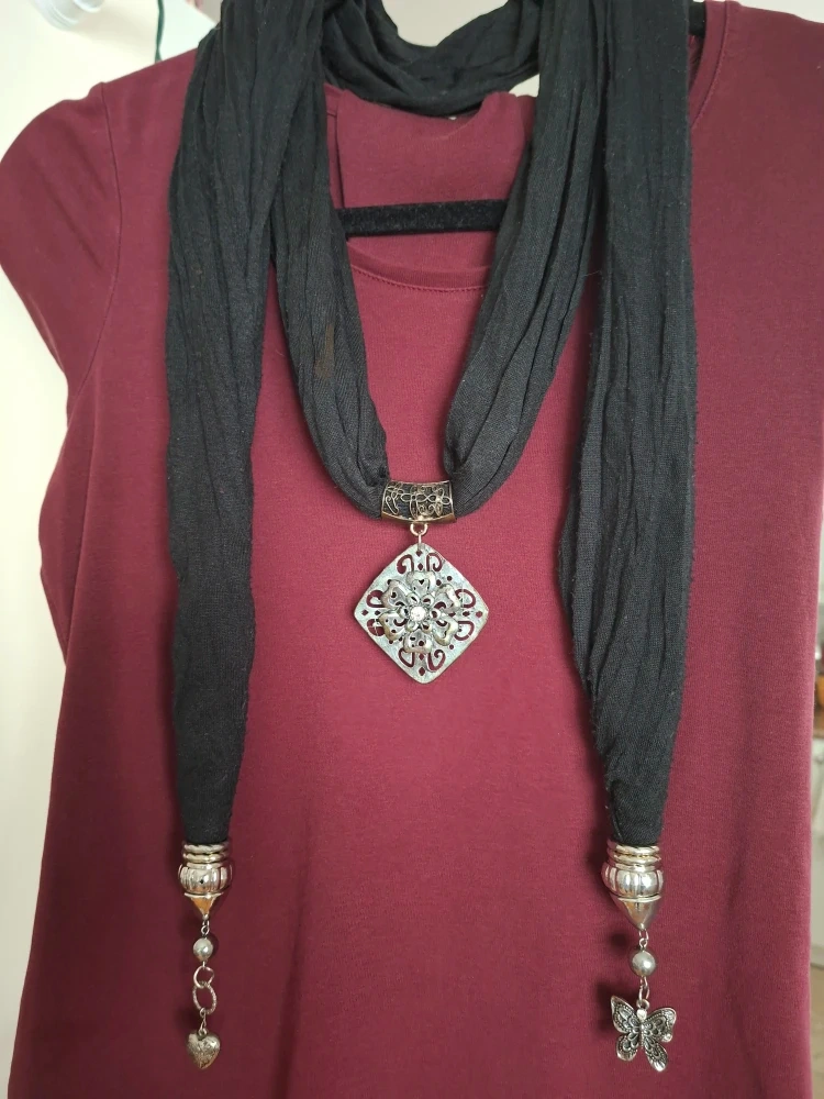 Black Scarf Necklace with Pendants
