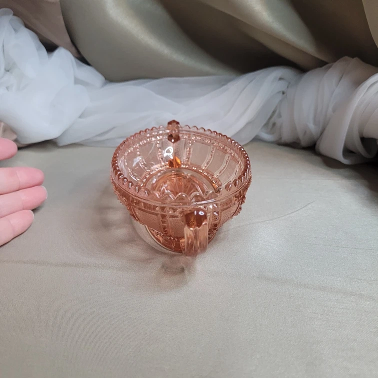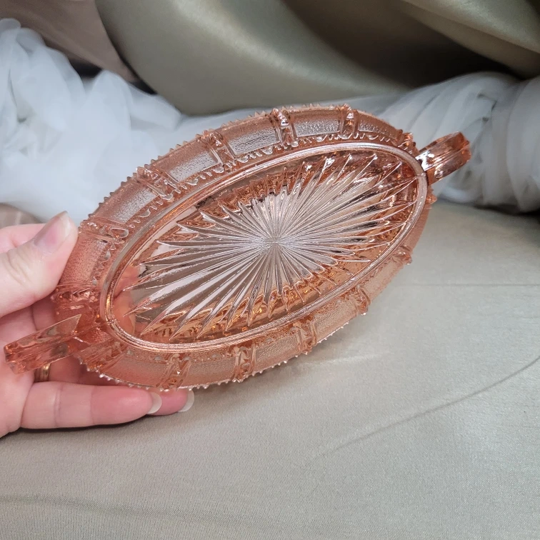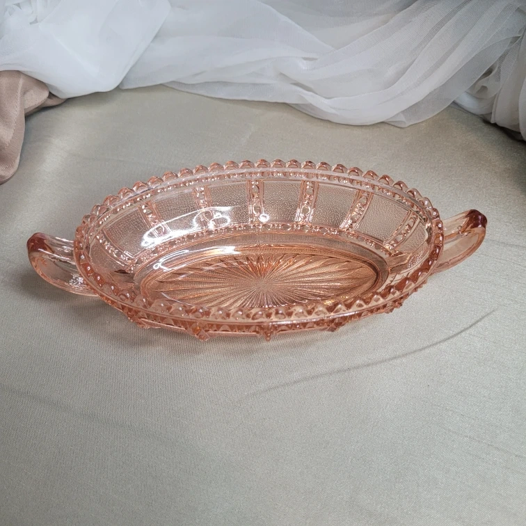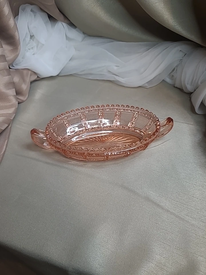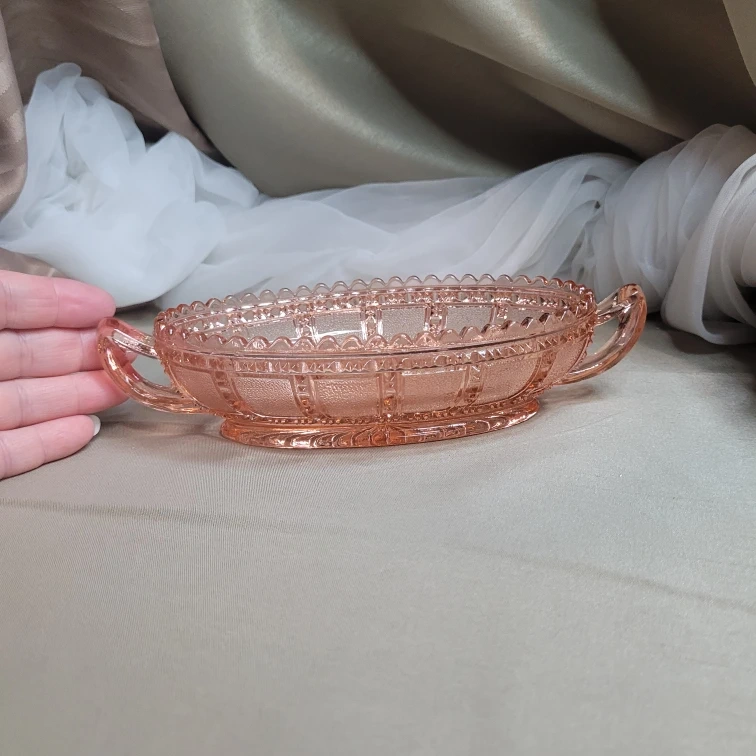 Vintage Depression Imperial Beaded Block Pattern Pink Pickle Bowl Glass Handles 6" x 4" then Handles Excellent Condition please see all pictures