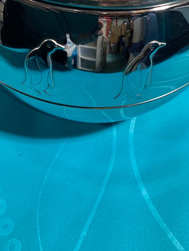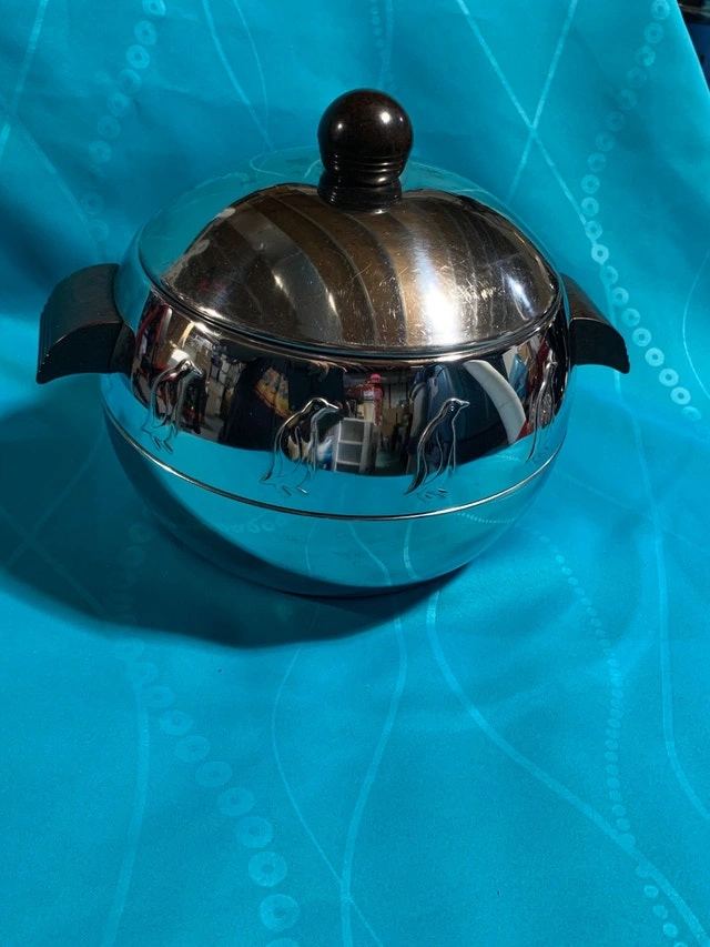 Vintage Mid Century Modern style West Bend Penguin Hot & Cold Server Ice Bucket w/Bakelite Handles & Knob A great throwback conversation piece with wonderful penguin figures all along the sides.
