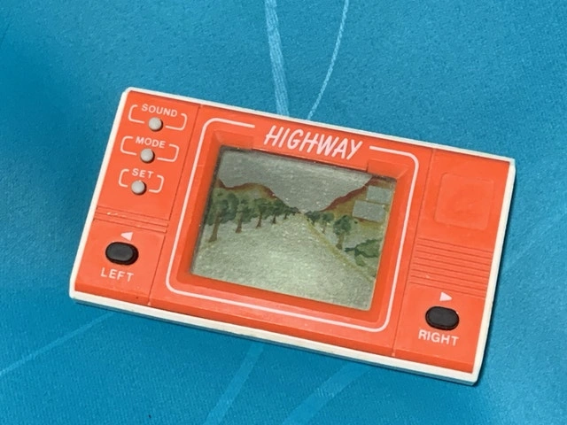 Relive the nostalgia with this vintage Highway Game & Watch handheld, a true relic from the '80s! This retro gaming device features a simple yet addictive gameplay where you navigate a car down a highway. Being a used item, it shows some signs of wear, which only adds to its vintage charm. The screen and buttons are in good working order, allowing you to fully enjoy this classic handheld game. Battery cover is missing, however. Nintendo Game & Watch was really popular when this Radio Shack Highway LCD handheld electronic game. The game was released around 1988. The objective is to drive down a highway, pick up a hitchhiker from the left, and transport her safely to a bus stop on the right side of the screen. The device has buttons for "Sound," "Mode," "Set," "Left," and "Right". It typically uses one or two LR44 batteries.