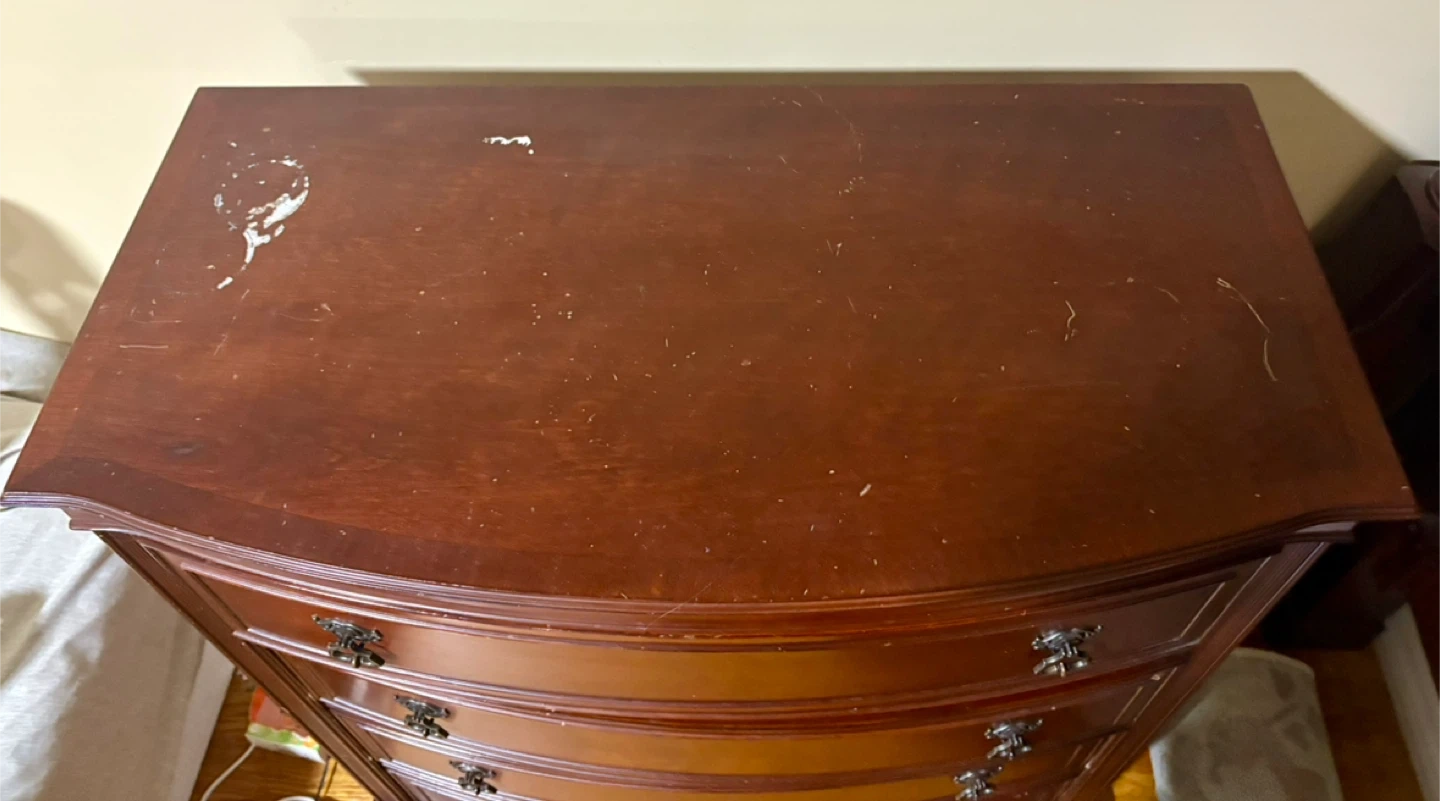 King Bombay Company canopy bed and two dressers. The bed is in good condition and the two dressers have marks on the tops and one is missing a handle and another has a drawer that needs to be screwed back in at the front as it’s coming apart a bit (see photos).