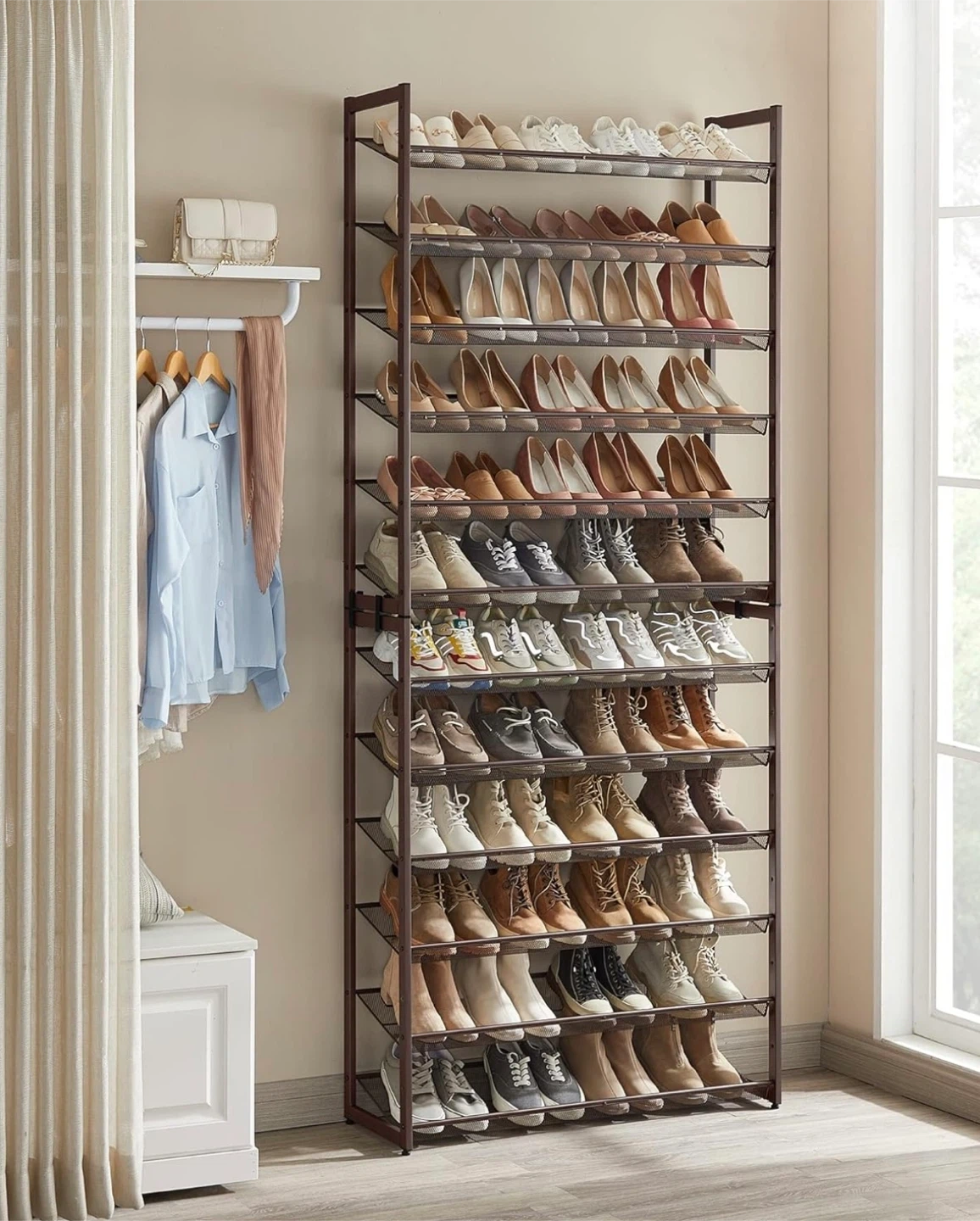 Selling a brand new SONGMICS 12-Tier Bronze Metal Shoe Rack β premium quality, perfect for entryway, closet, hallway, mudroom, or garage storage. This model is large, sturdy, and fits up to 60 pairs of shoes. Hard to find in stores!