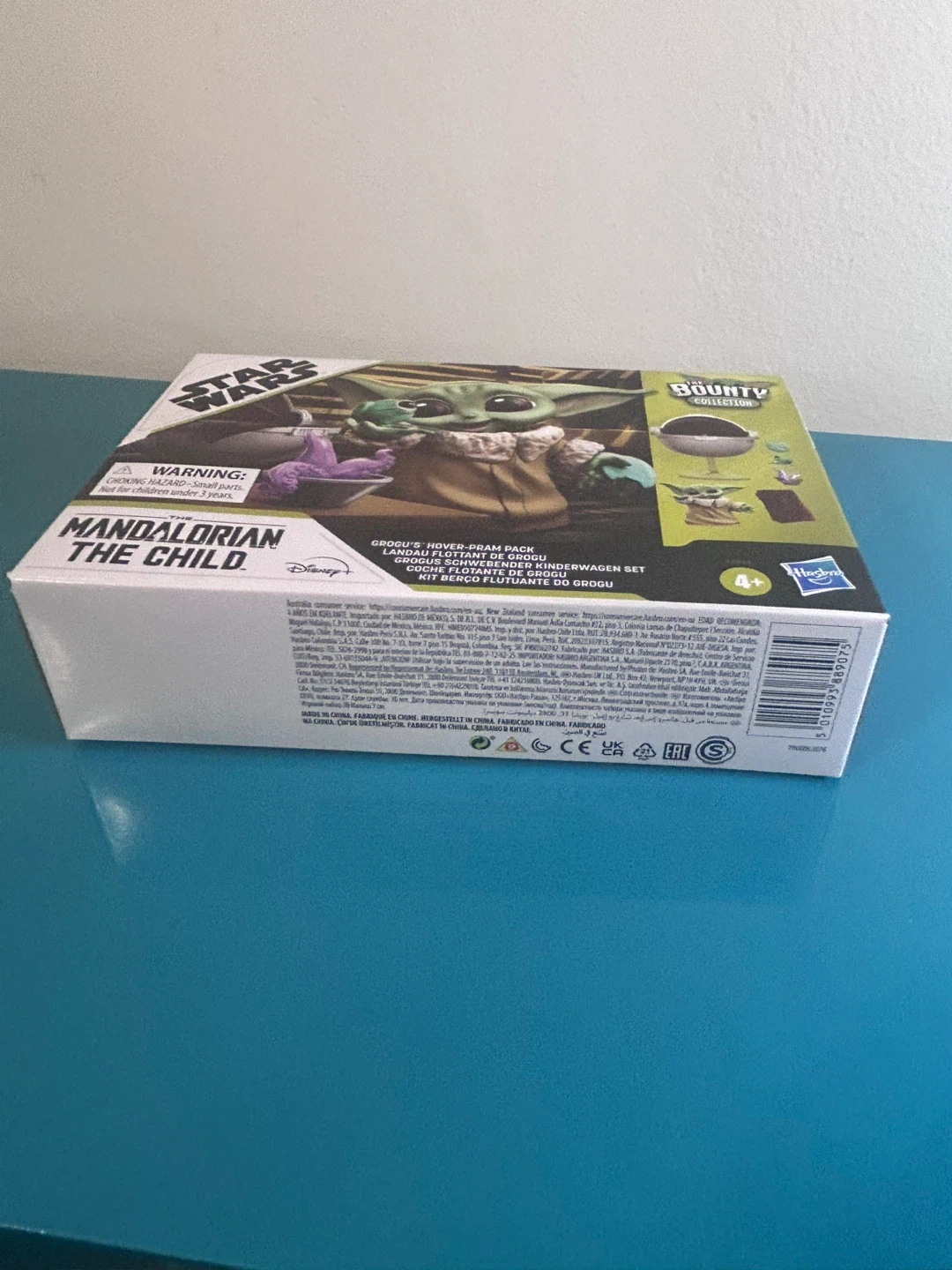 This brand-new, unopened Hasbro Bounty Collection set includes Grogu, his hover-pram, and themed accessories — perfect for collectors or gifting.