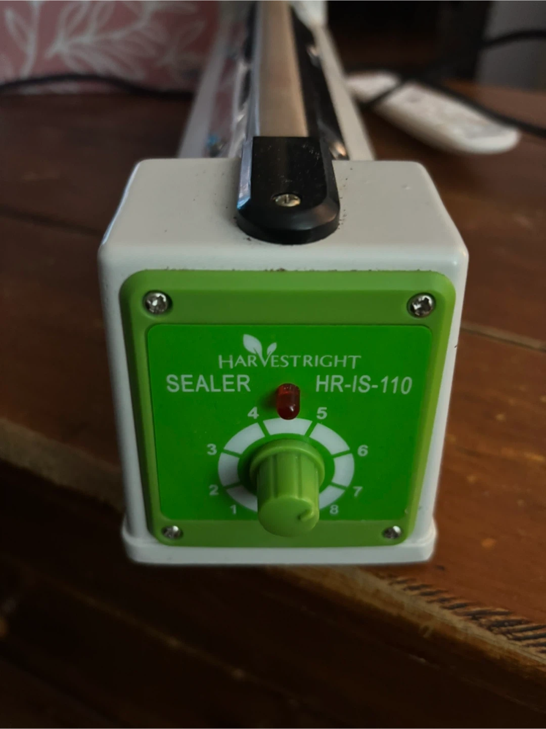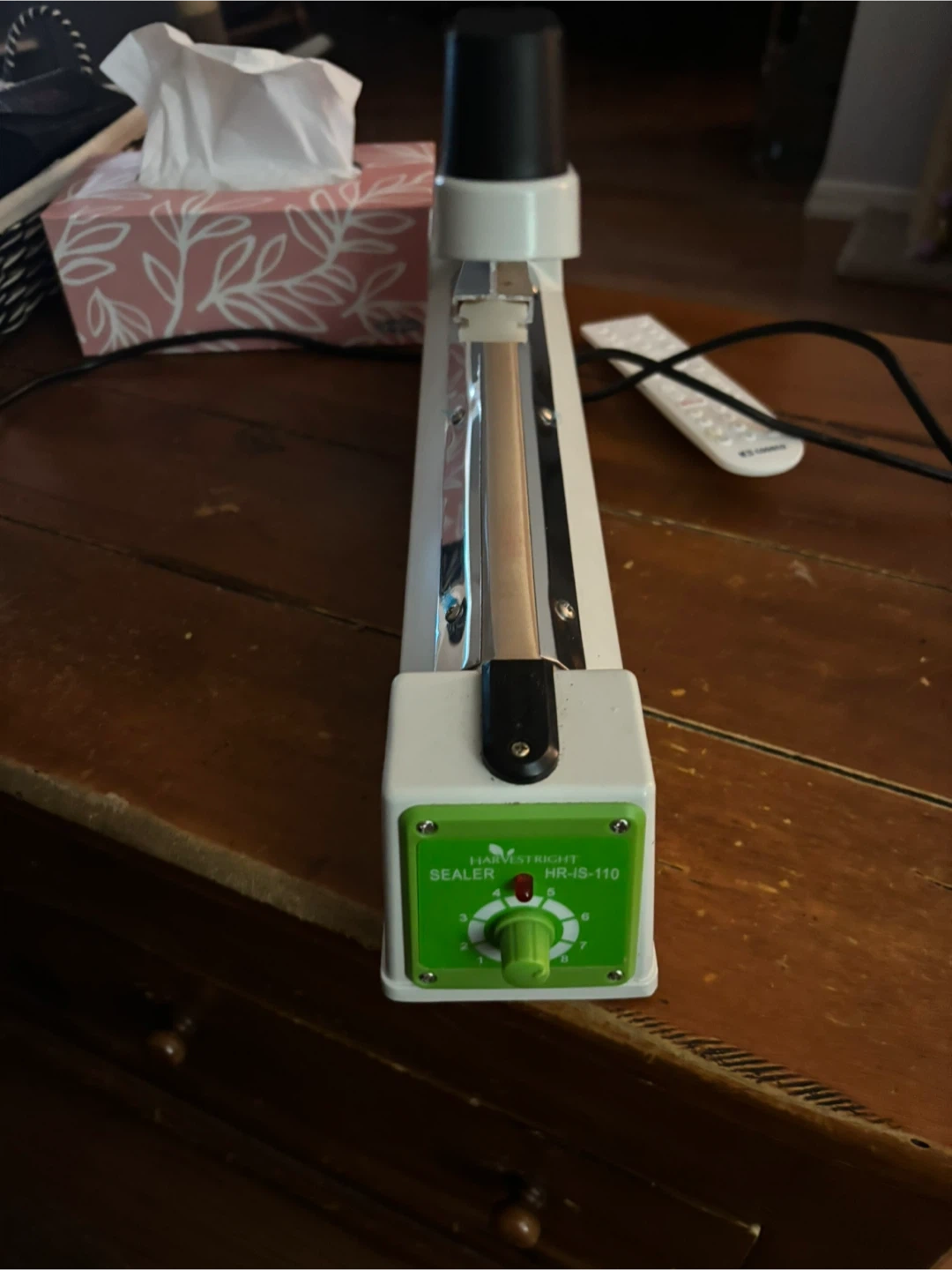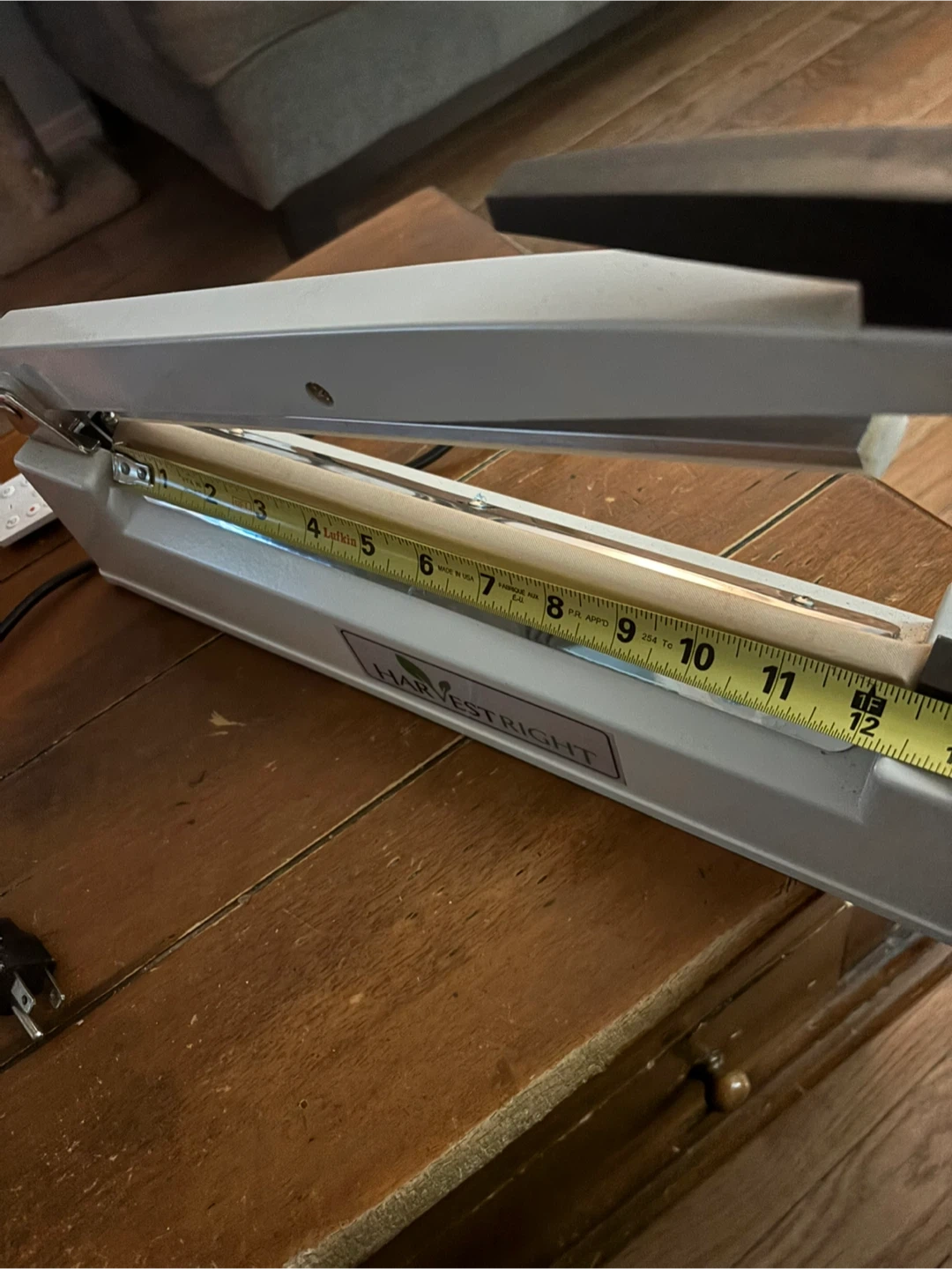 Harvest Right 12-inch impulse heat sealer, a device used for sealing various types of bags, particularly Mylar bags for long-term food storage.