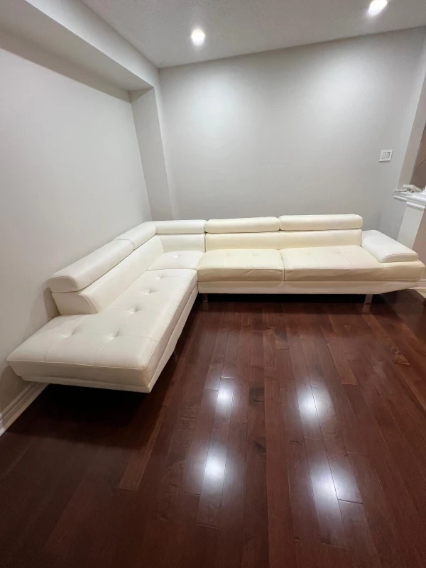 Selling a stylish white leather sectional sofa. It's in great shape and would look fantastic in any living room! The sofa features a modern design with comfortable seating. Perfect for lounging and entertaining friends and family