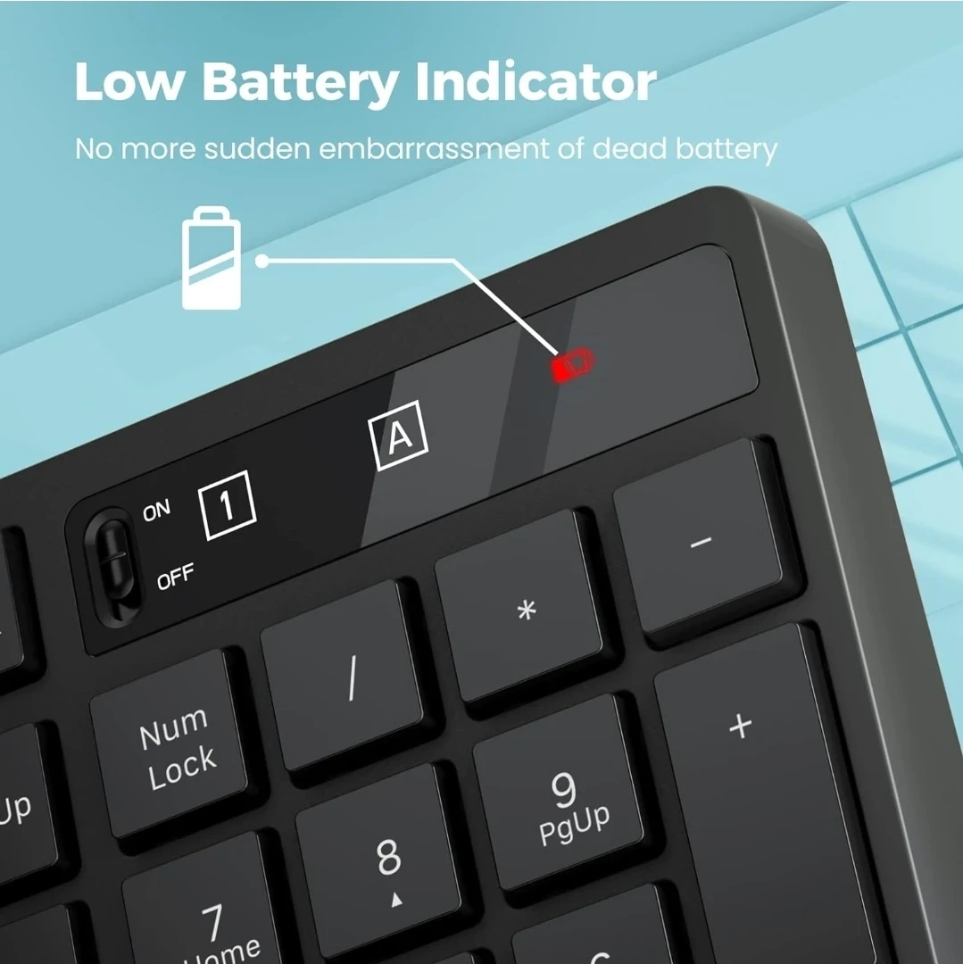 Selling a Lovaky wireless keyboard and mouse combo in black. It features an ergonomic keyboard and a mouse with adjustable DPI. The keyboard is designed with an 8-degree tilt to help release wrist pressure, making typing more effortless and efficient. It also has smart power management to save battery life and reduce battery replacement.