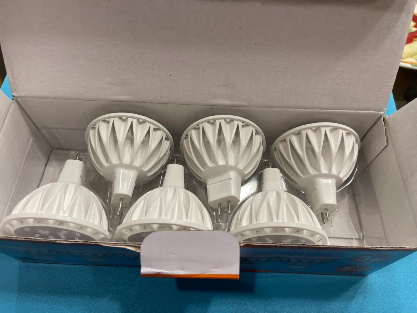 Selling a brand new, unopened box of 6 LED spotlight bulbs. These are 5W bulbs designed to be energy-saving, using up to 90% less energy. Perfect for replacing older, less efficient bulbs!