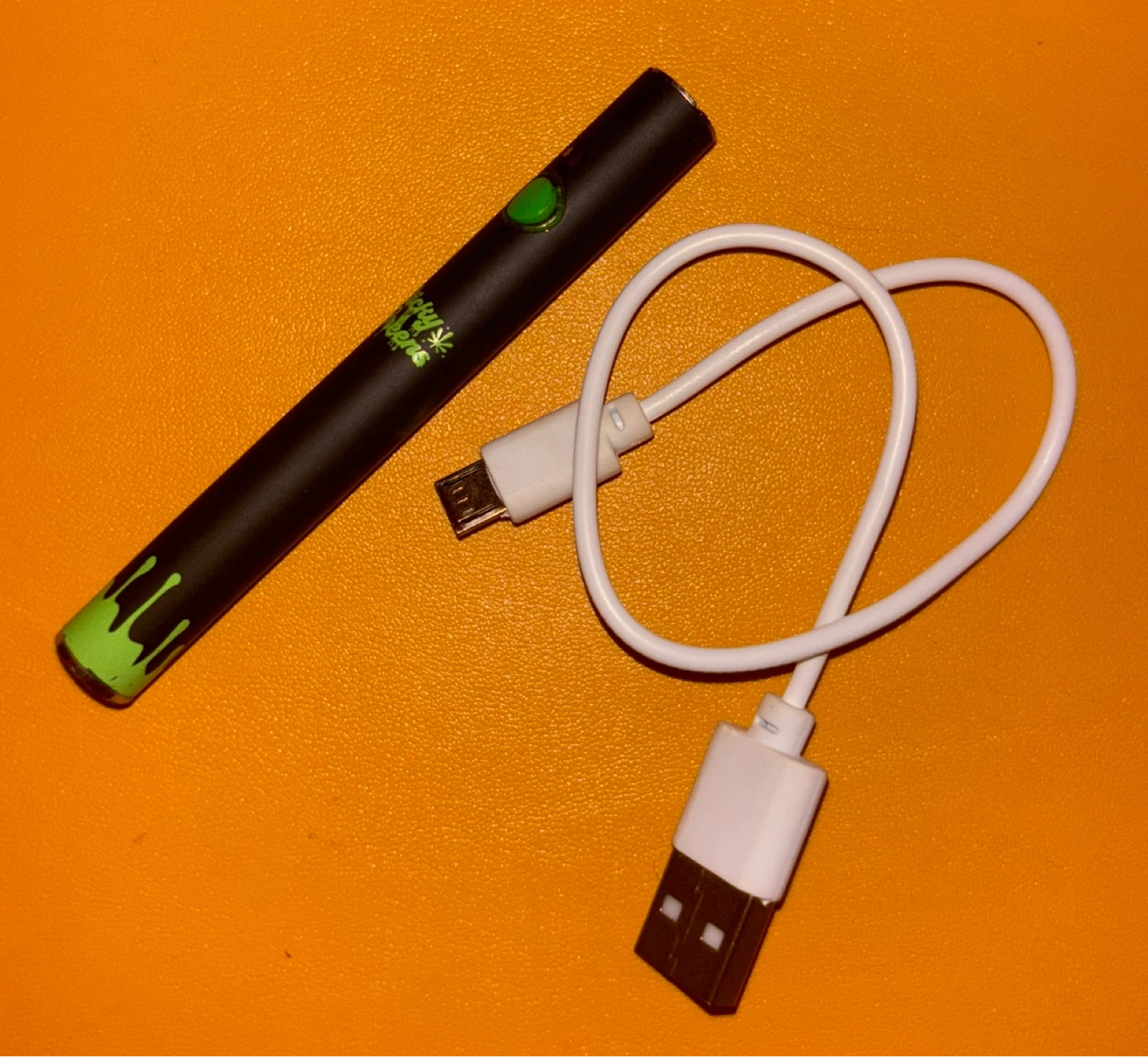 Selling a Sticky Greens vape pen (cart) . It comes with a charger so you can keep it ready to go! The pen is black with green accents .