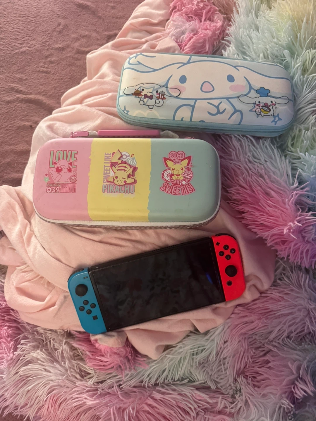 Selling a Nintendo Switch OLED in great condition! It comes with two cases to keep it safe and sound. Perfect for gaming on the go or at home!