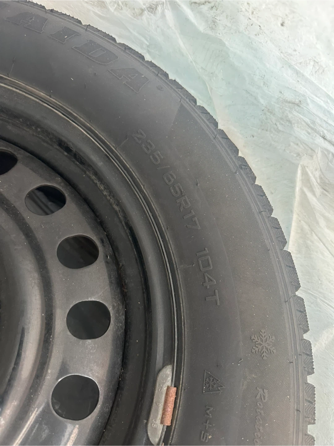 Buy & SellHaida Winter Tire 235/65R17Haida Winter Tire 235/65R17$297Selling an Haida winter tire, size 235/65R17. It’s four wheels with steel rims. It's in great condition and ready to handle the snowy roads.ConditionLike newWHERE TO MEETCheck LocationView MapSELLERverifiedSangayEglinton E600 reviews1 chats·0 favorites·13 views