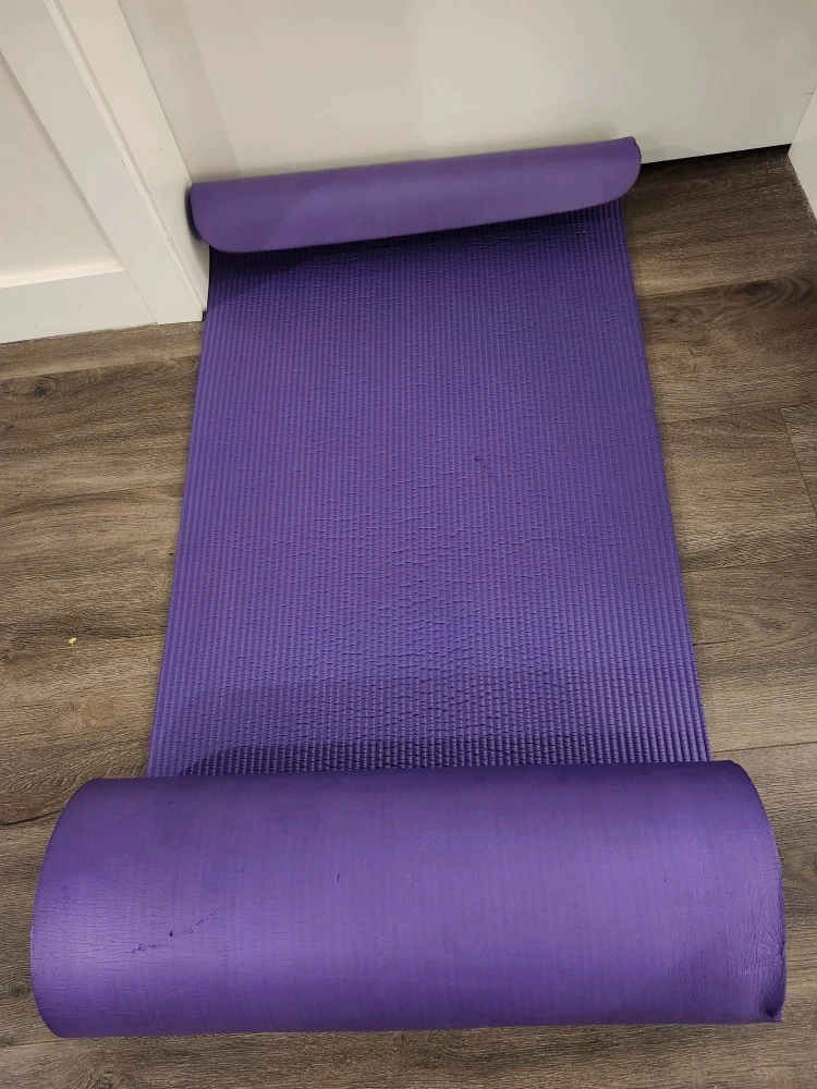Selling a gently used purple yoga mat. It's perfect for your home workouts or yoga sessions! It's lightweight and easy to roll up for storage