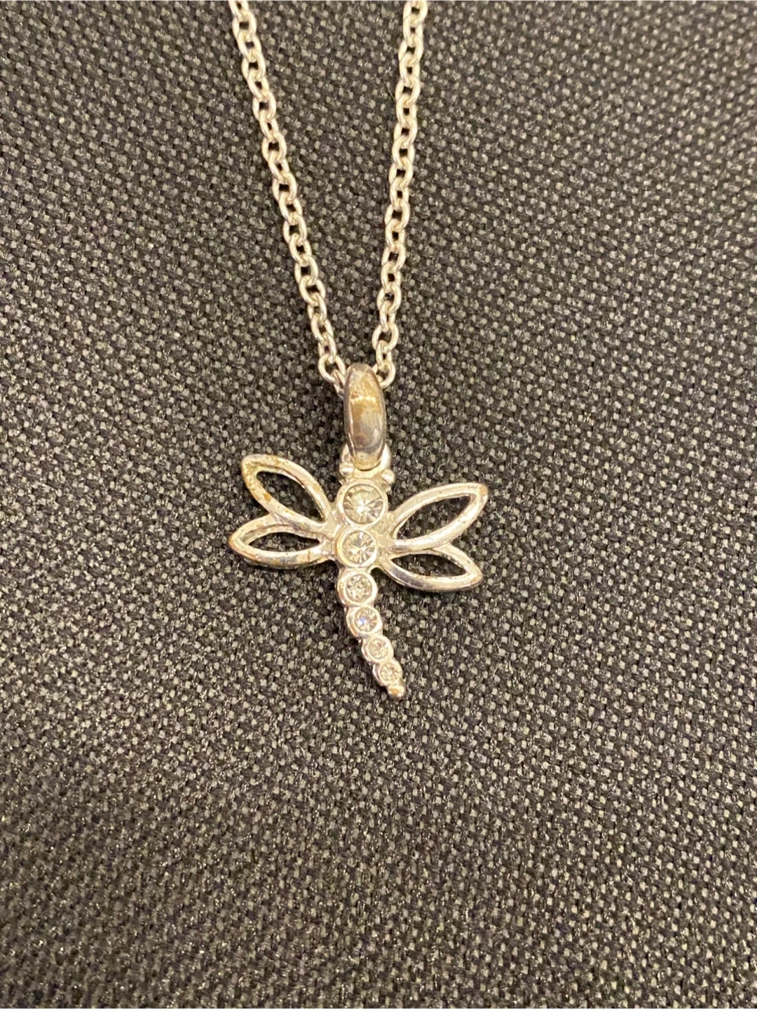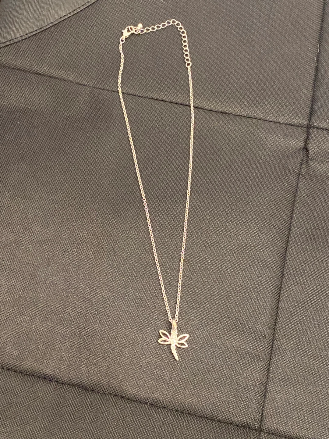 Cute dragonfly pendant necklace with rhinestones on a delicate chain and a lobster clasp closure. It would make a lovely addition to any outfit! 19.5 cm in length.