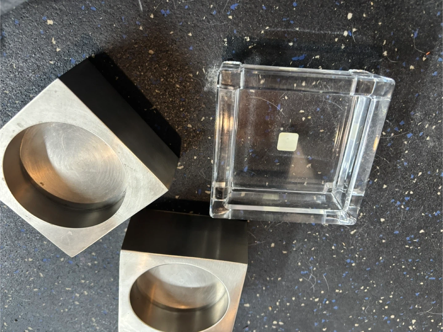 Selling a Partylite clear glass candle holder. It's in good condition and ready to add a touch of elegance to your space! Plus two metal candle holders. Price for all three