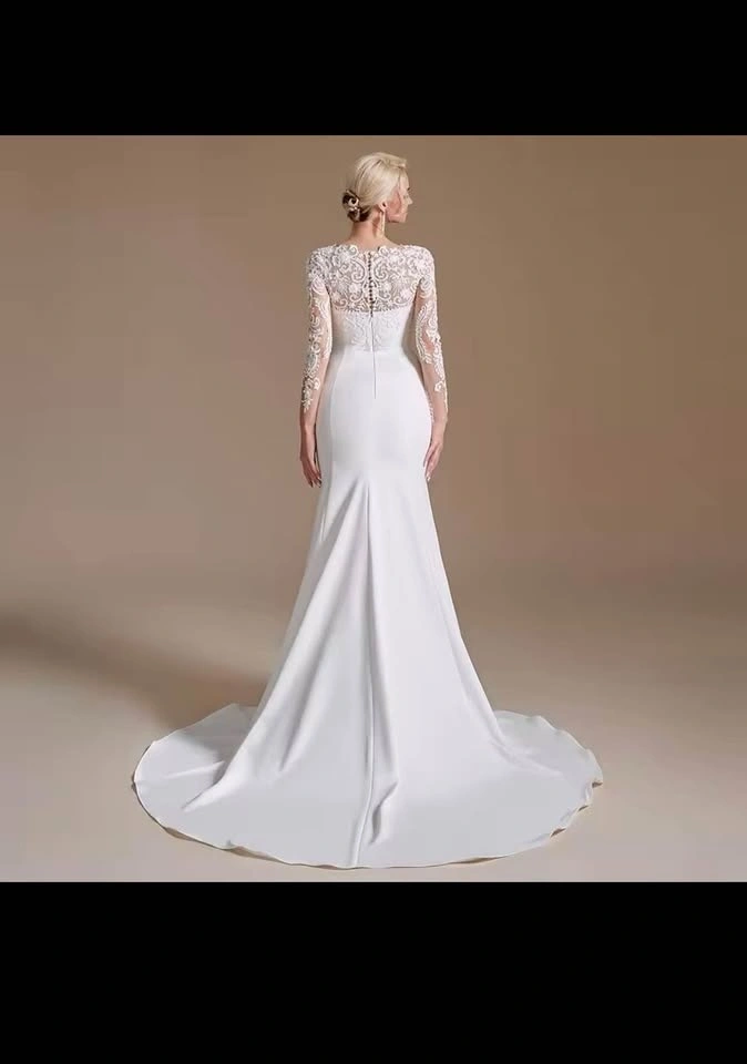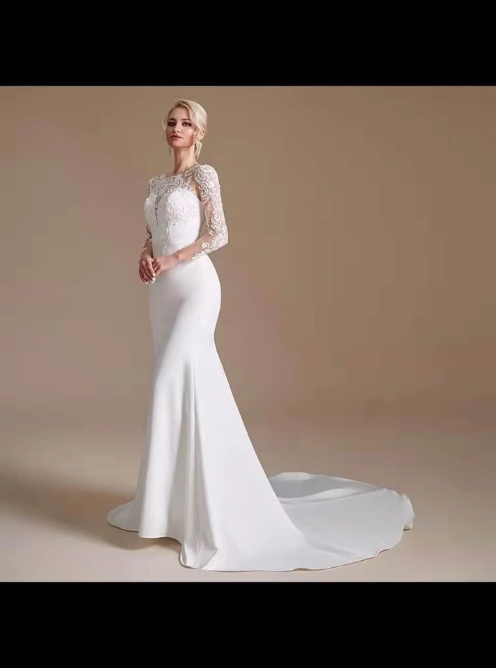 Stretchy Spandex Wedding Dress with Lace Appliques Beaded size 1