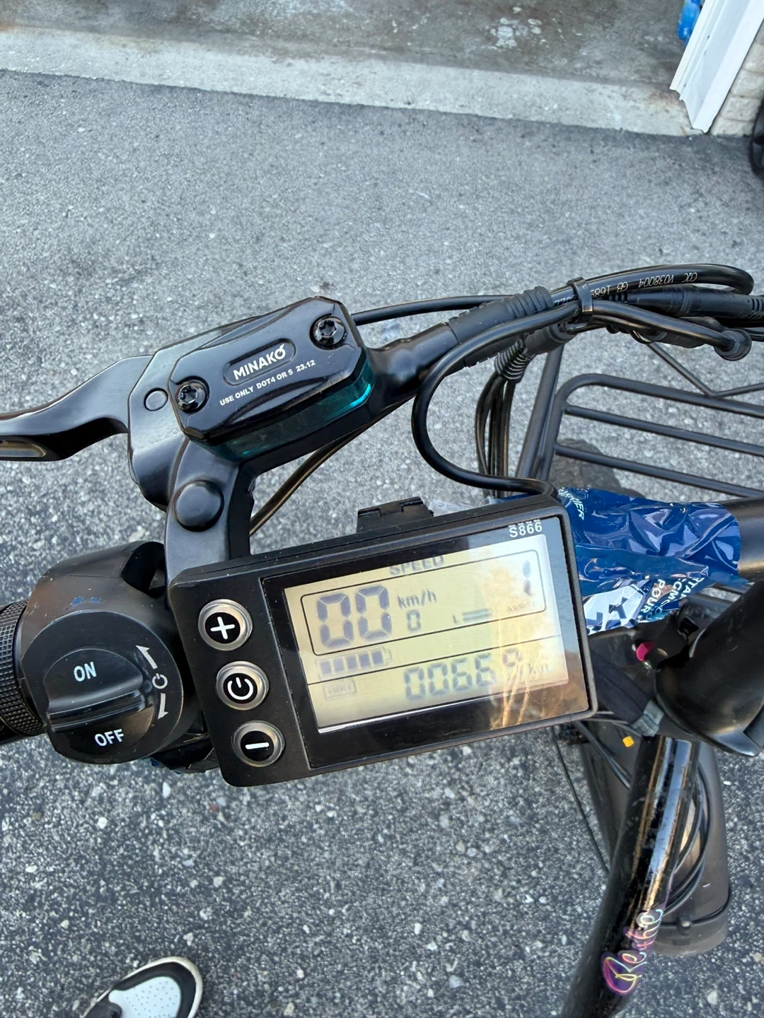 I no longer need it because I bought a car. This is Donkey Models The bike's condition is excellent. Its performance is excellent. It takes 6-7 hours to fully charge without pedaling. There is no problem with charging on a single charge. The braking system is very good. The indicator works perfectly. It performs well with its 960W battery. The delivery bag and the iron will be removed. I will keep it for myself. The address is North York Sheppard West
