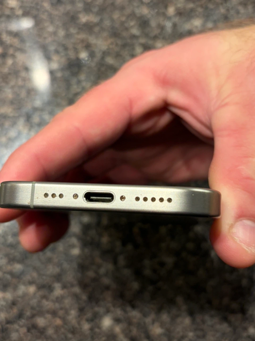 Selling an iPhone Titanium 15 pro , 512 GB , unlocked , with 80 percent battery , comed in original box