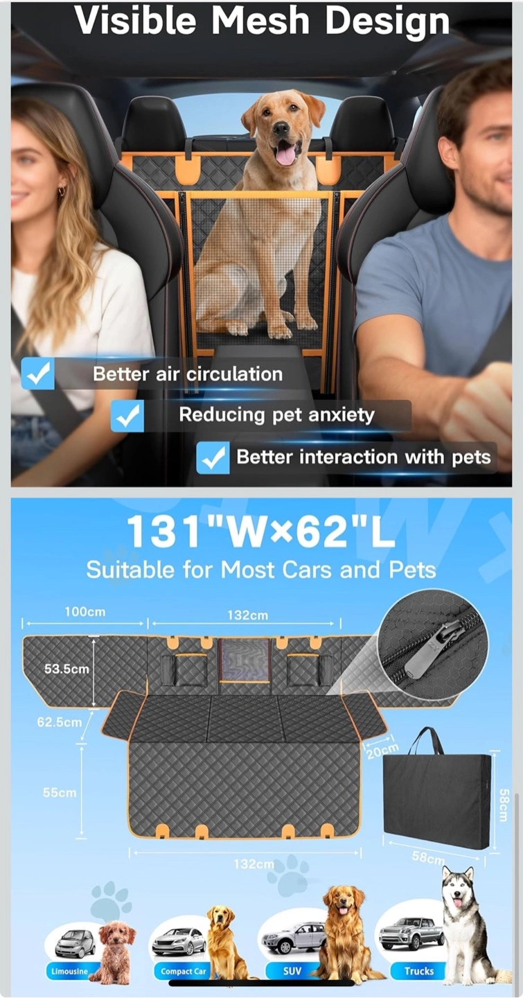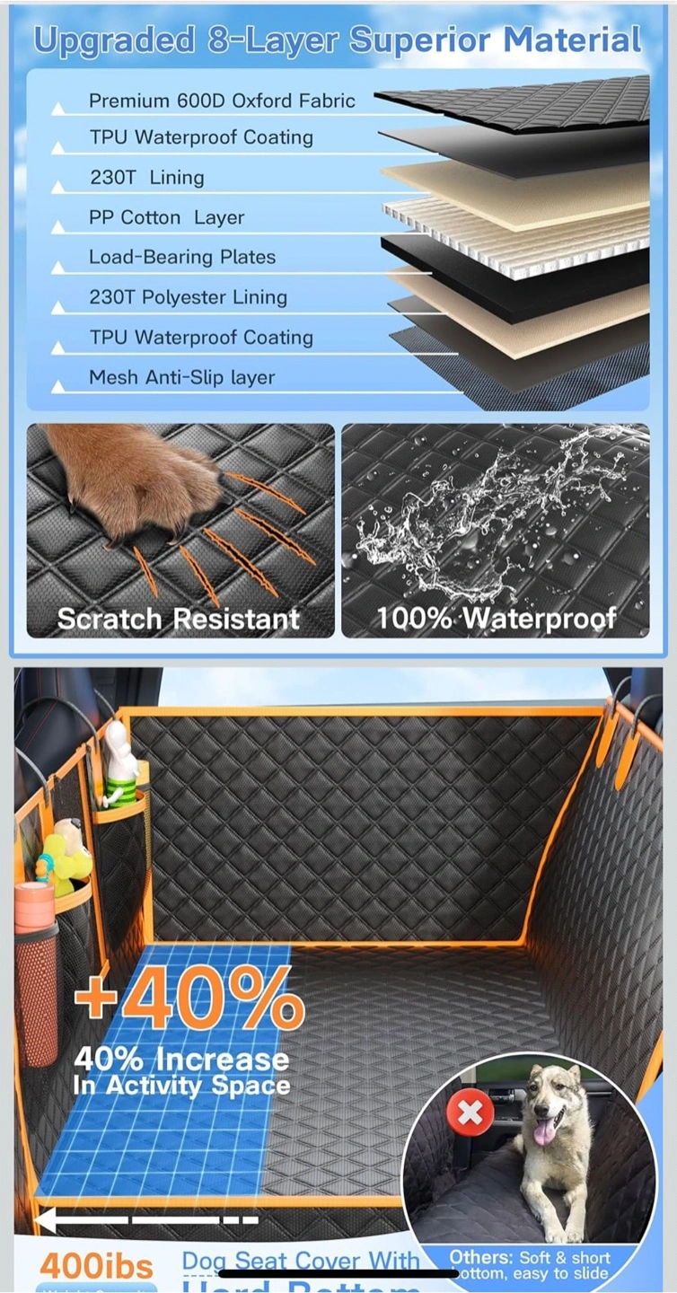 Keep your car clean and your furry friend safe with this Twesyinc dog seat cover! It's designed for the back seat and has a hard bottom board that can hold up to 400lbs.