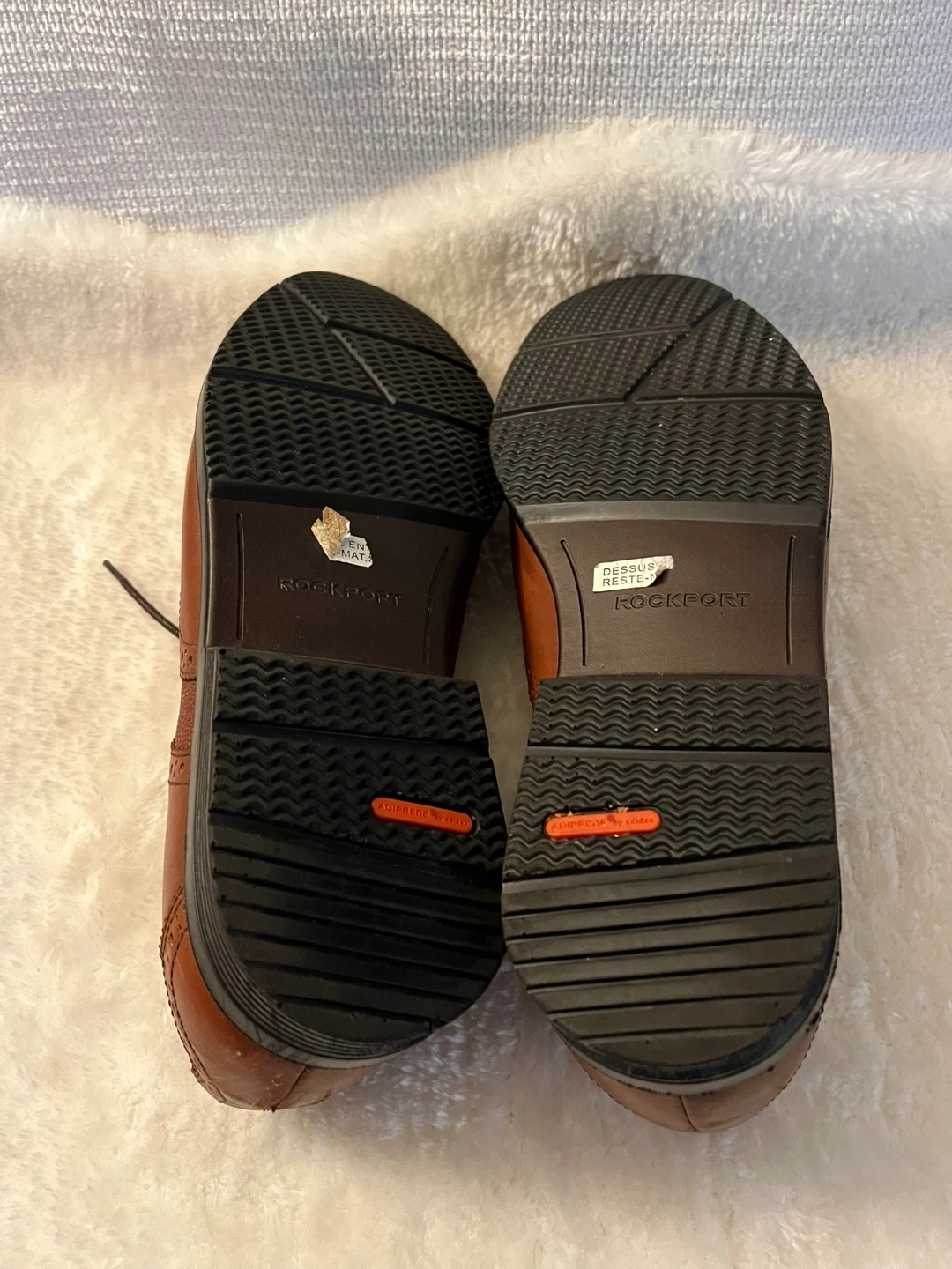 New Classic Rockport brown leather wingtip dress shoes with detailed brogue pattern and a comfortable fit