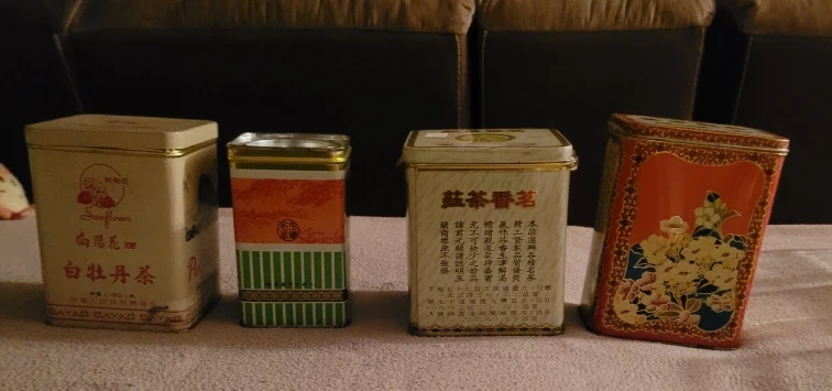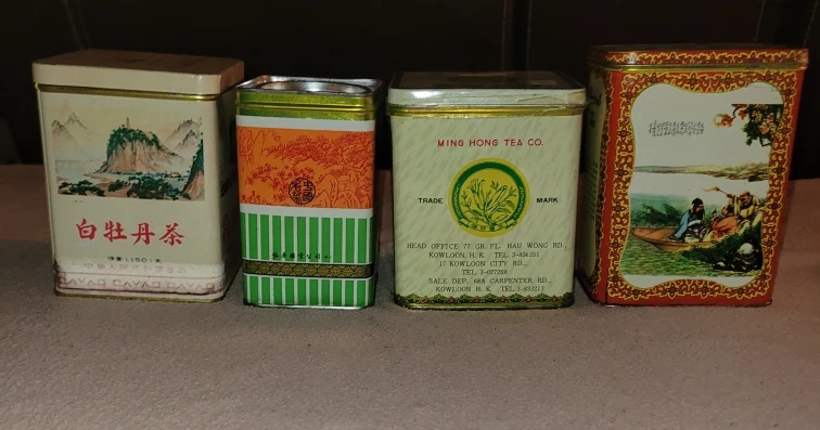 Selling a set of four Chinese green tea. They feature beautiful designs and are perfect for collectors or for adding a unique flavor. The brands include Sunflower Pai Mu Tan, Yannah Pu-Erh Tea, Ming Hong Tea Co, and Choicest Tea.