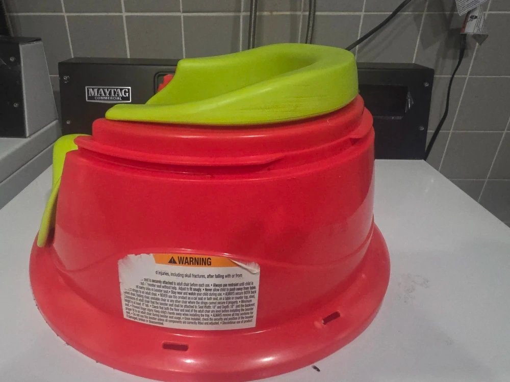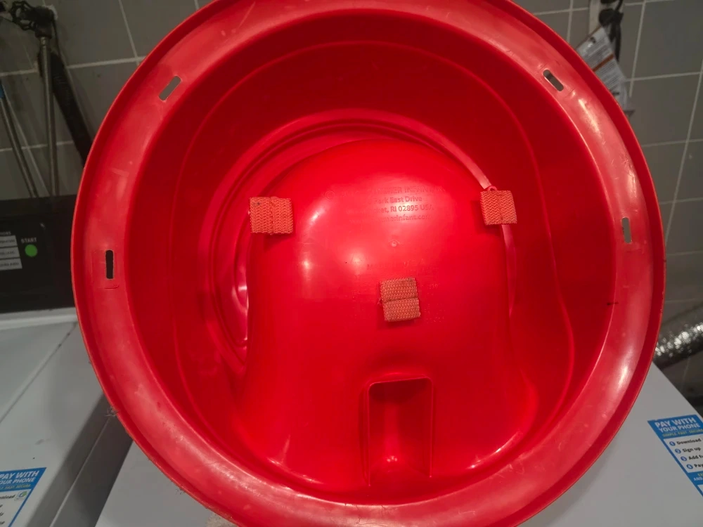Selling a Bumbo floor seat in red and green! It's great for helping your little one sit upright. It includes a safety strap. Perfect for infants!