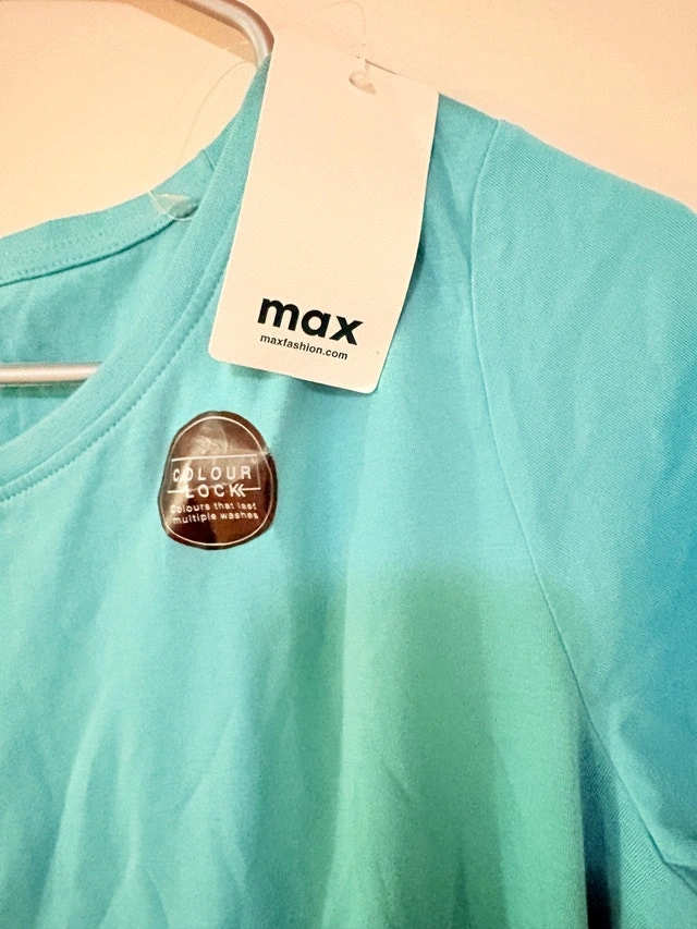 This is a new MAX Active T-shirt, a versatile addition to your wardrobe, perfect for workouts or casual wear. It features a comfortable fit and is made from breathable fabric for maximum comfort. The size is XL. Specifications: * Brand: MAX * Size: XL / 16 * Colour: Turquoise * Features: Colour Lock to protect the colour through multiple washes. If you're seeing this ad, it's still up for grabs, so don't hesitate to reach out!