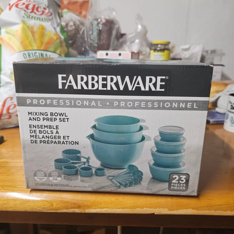 I'm selling a brand new Farberware Professional mixing bowl and prep set! This set includes 23 pieces. It's still in its original box, never been used.