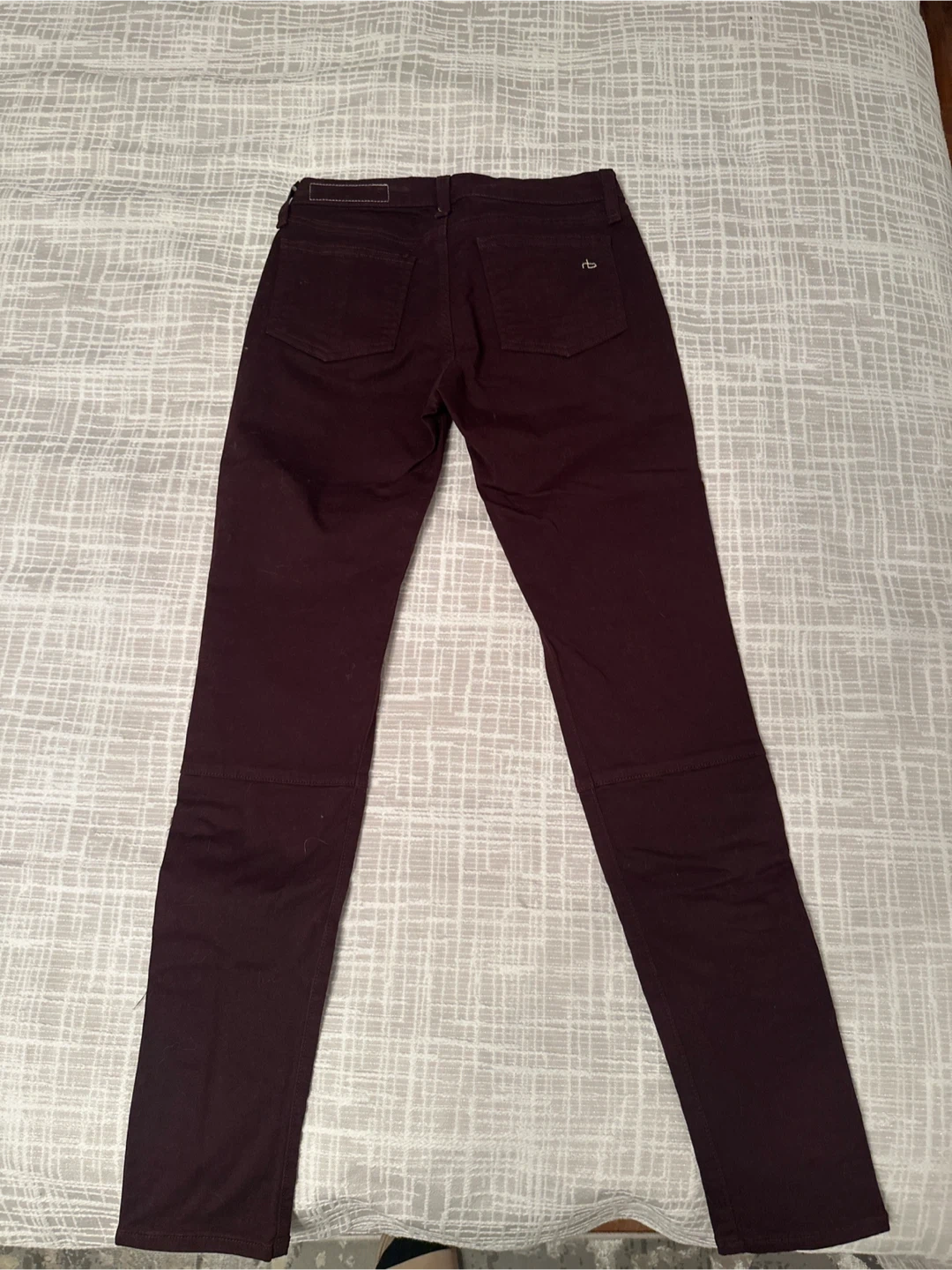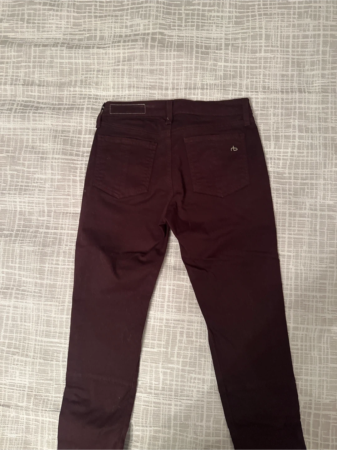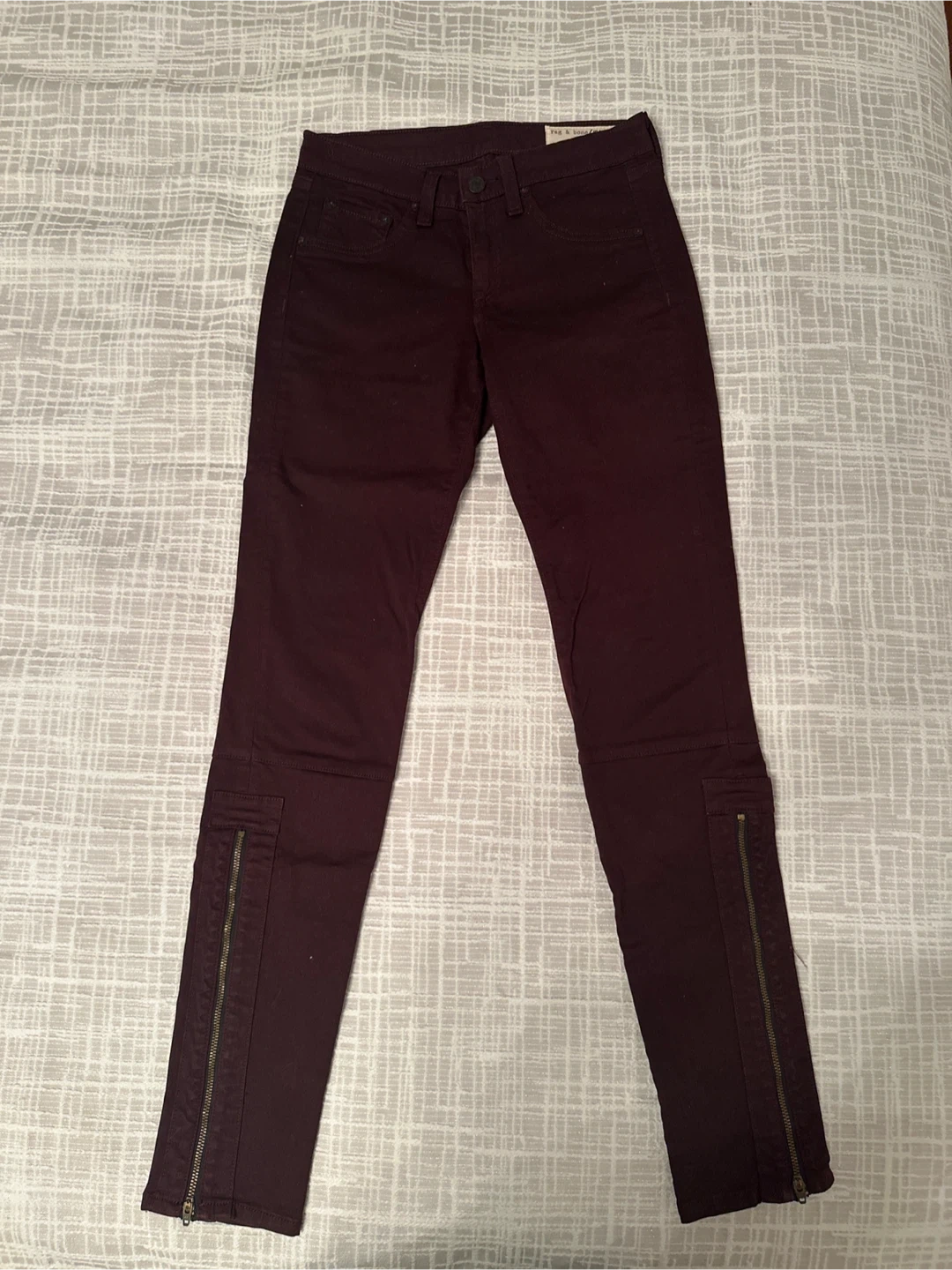 Rag & Bone skinny jeans in a lovely burgundy colour! They feature zippers at the ankle. They're in great condition.