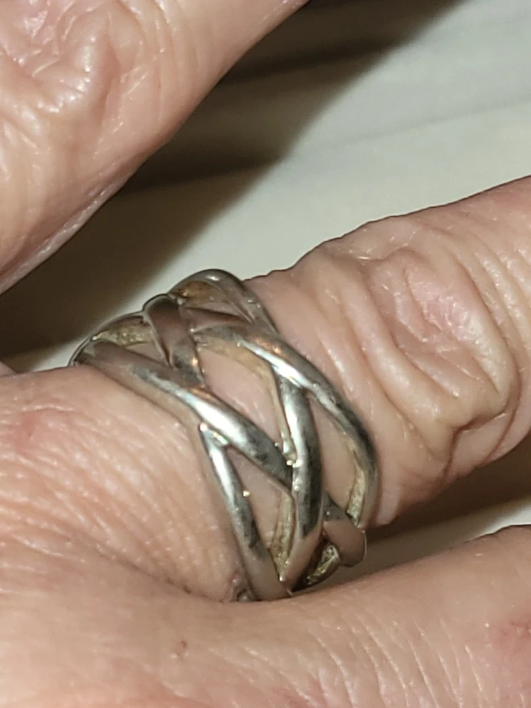 Selling a sterling silver ring featuring a braided design. It's marked with '925', indicating its silver purity. Perfect for adding a touch of elegance to any outfit!
