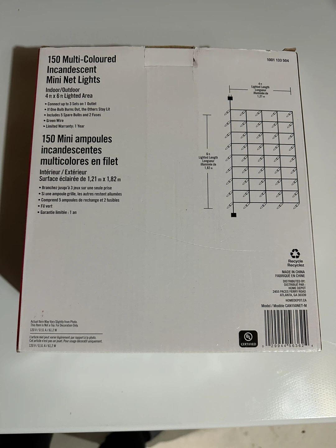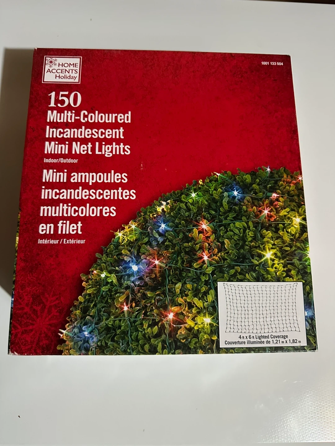 Selling a set of Home Accents Holiday 150 Multi-Coloured Incandescent Mini Net Lights! These lights are suitable for both indoor and outdoor use. They cover a 4 x 6 ft lighted area (1.21 x 1.82 m). The box includes spare bulbs and fuses. Connect up to 3 sets end to end, and if one bulb burns out, the others stay lit. Box included!
