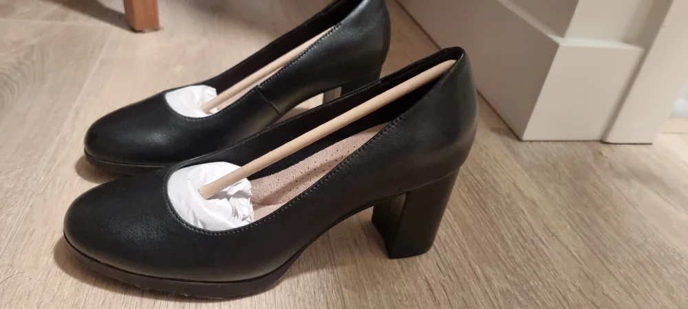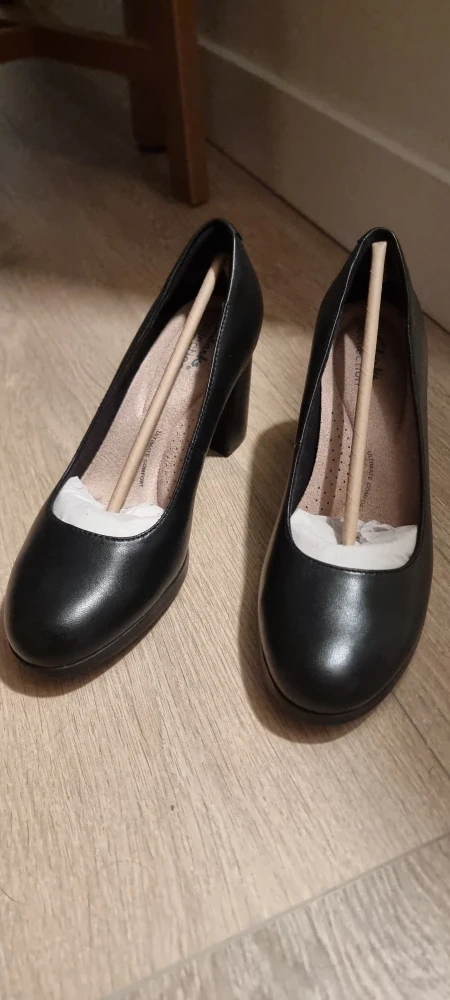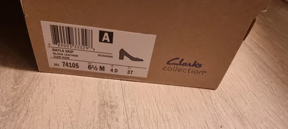 Selling a pair of Clarks Bayla Skip heels in black leather. They are size 6.5 M (US). These heels come in their original box. Brand new, nev3r worn. Selling because it's too small and missed the return window.