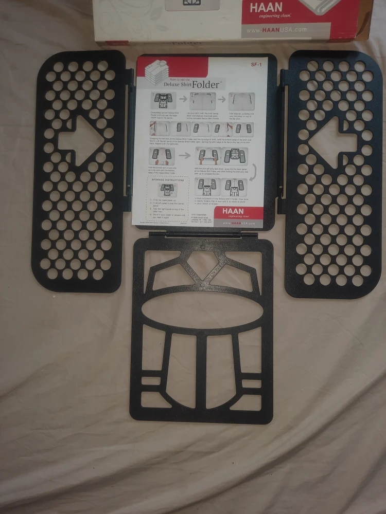 I'm selling a brand new HAAN Deluxe Shirt Folder SF-1, still in its original packaging! This handy tool makes folding shirts and T-shirts quick and easy, helping you keep your closet neat and organized. It's perfect for anyone who wants to save time and effort on laundry day. Get yours today!