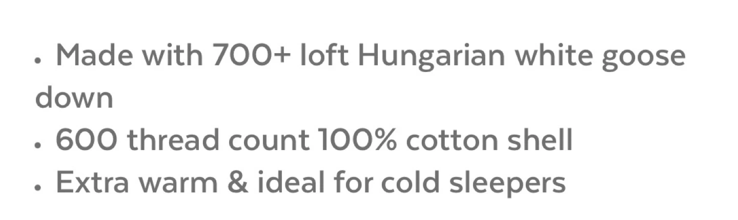 Selling a brand new, still-in-packaging Cachet Hungarian White Goose Down Duvet. It's a twin size (62" x 88" / 157 x 224 cm). Made with 700+ loft Hungarian white goose down and has a 600 thread count 100% cotton shell. Extra warm and ideal for cold sleepers! Regular price $526 after tax. Never opened
