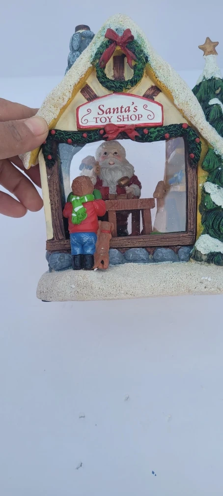 This is a charming Santa's Toy Shop figurine. It's a delightful piece to add to your holiday decorations and bring a touch of festive cheer to any room
