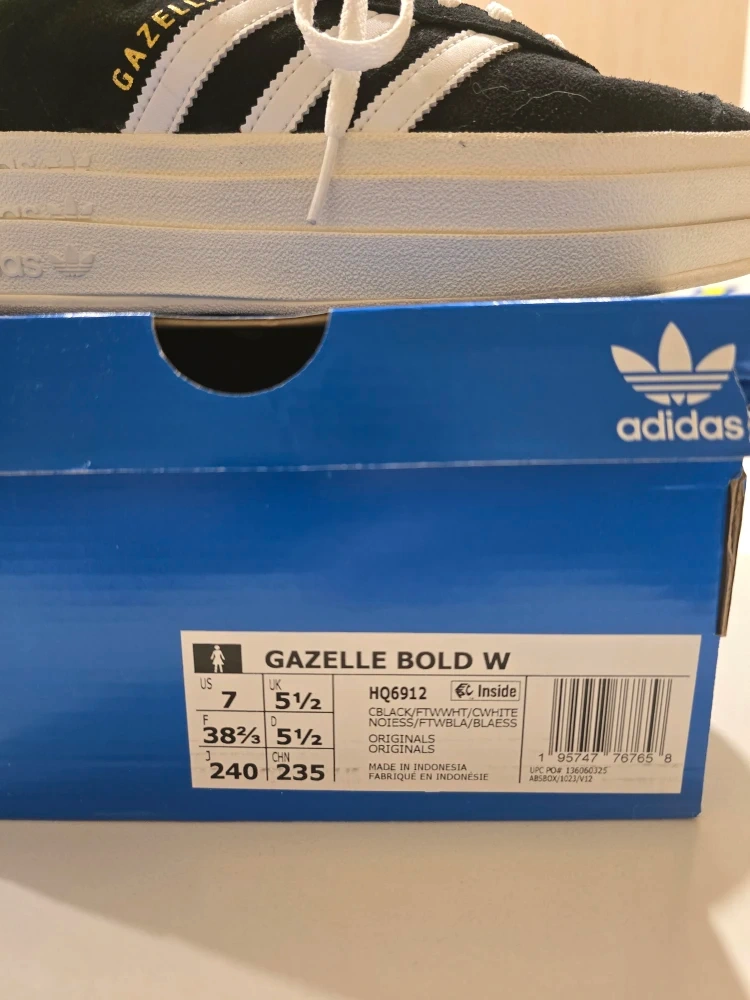 Selling a pair of Adidas Gazelle Bold W sneakers in black and white! They're a women's size 7. The shoes come with the original box. Only wear once .