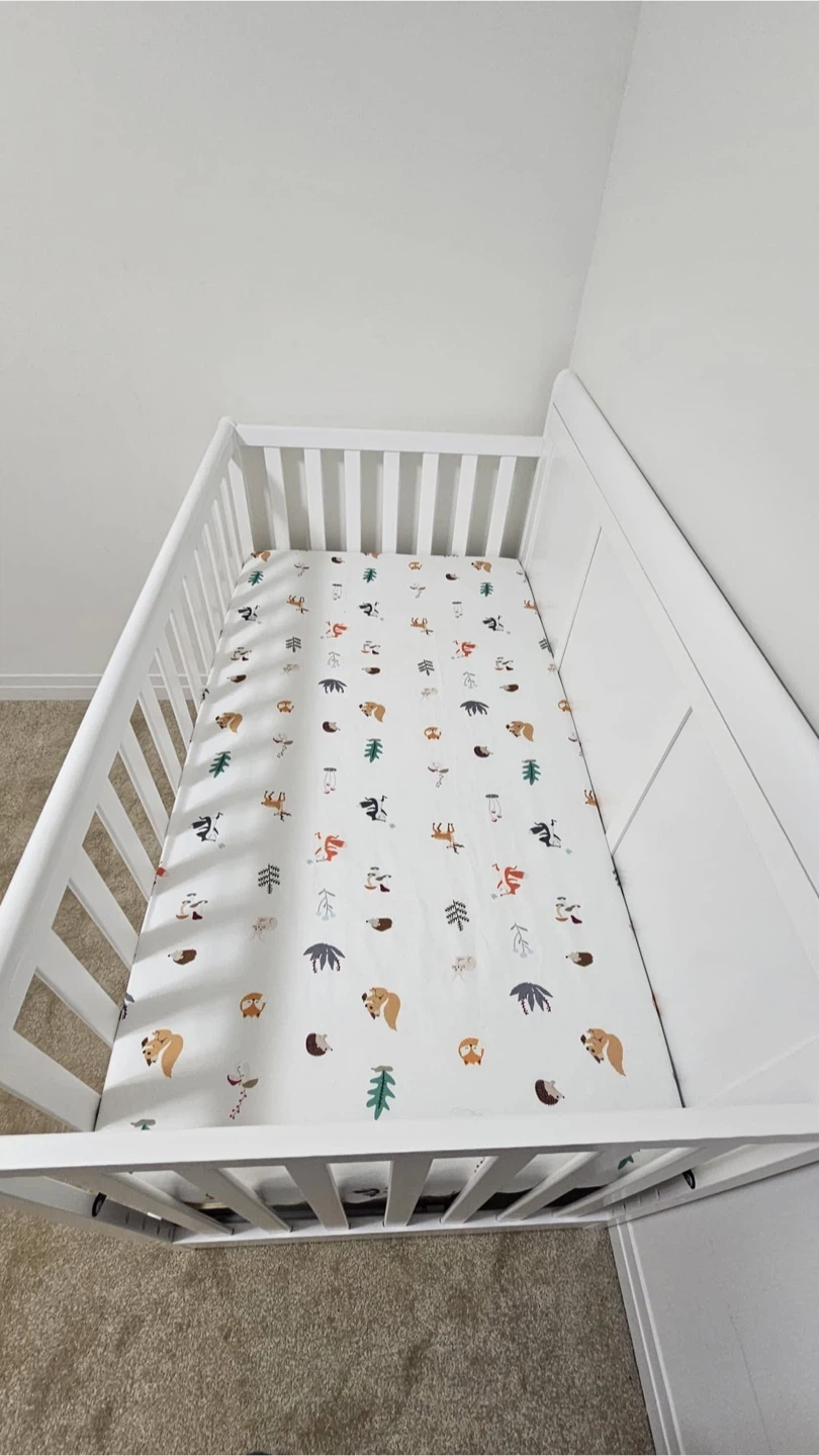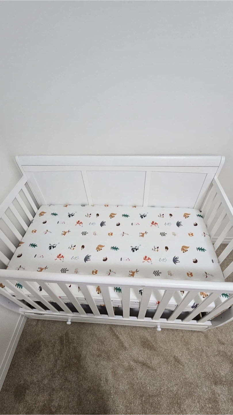 I'm selling a convertible crib in great condition! It's white and comes with a storage drawer underneath. Perfect for your little one's nursery