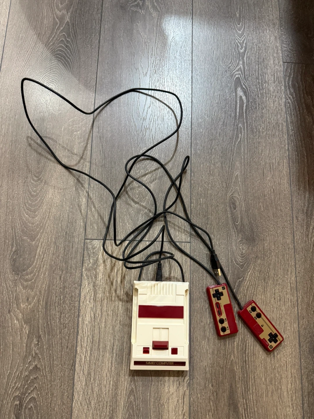 Mini Nintendo Family Computer console. Comes with two controllers and the necessary cables. It's in good condition for its age and ready for a new home!