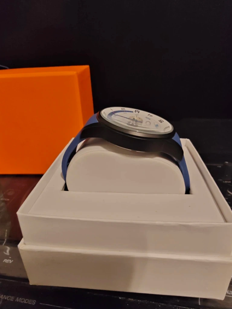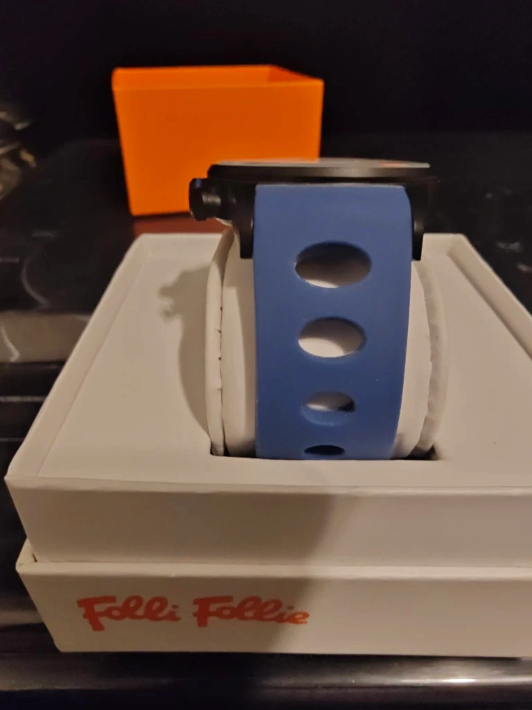 Selling a New & Never Worn, Folli Follie men's watch, model number WT1Y001ZE! It features a blue rubber strap and comes with its original box. The watch face has a unique design with flags and numbers. It's water-resistant up to 10 ATM.