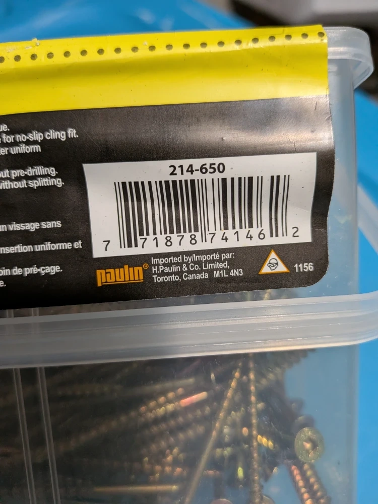 Selling a container of Paulin construction screws. They are size 8x3" and there are exactly 150 pieces in the container, used about 100