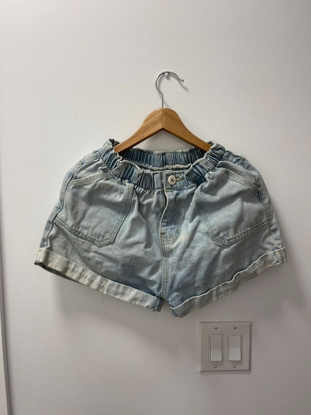 Women’s denim shorts with stretch waist. The tag has come off so unsure of the exact size. Best guess is size 6/small.