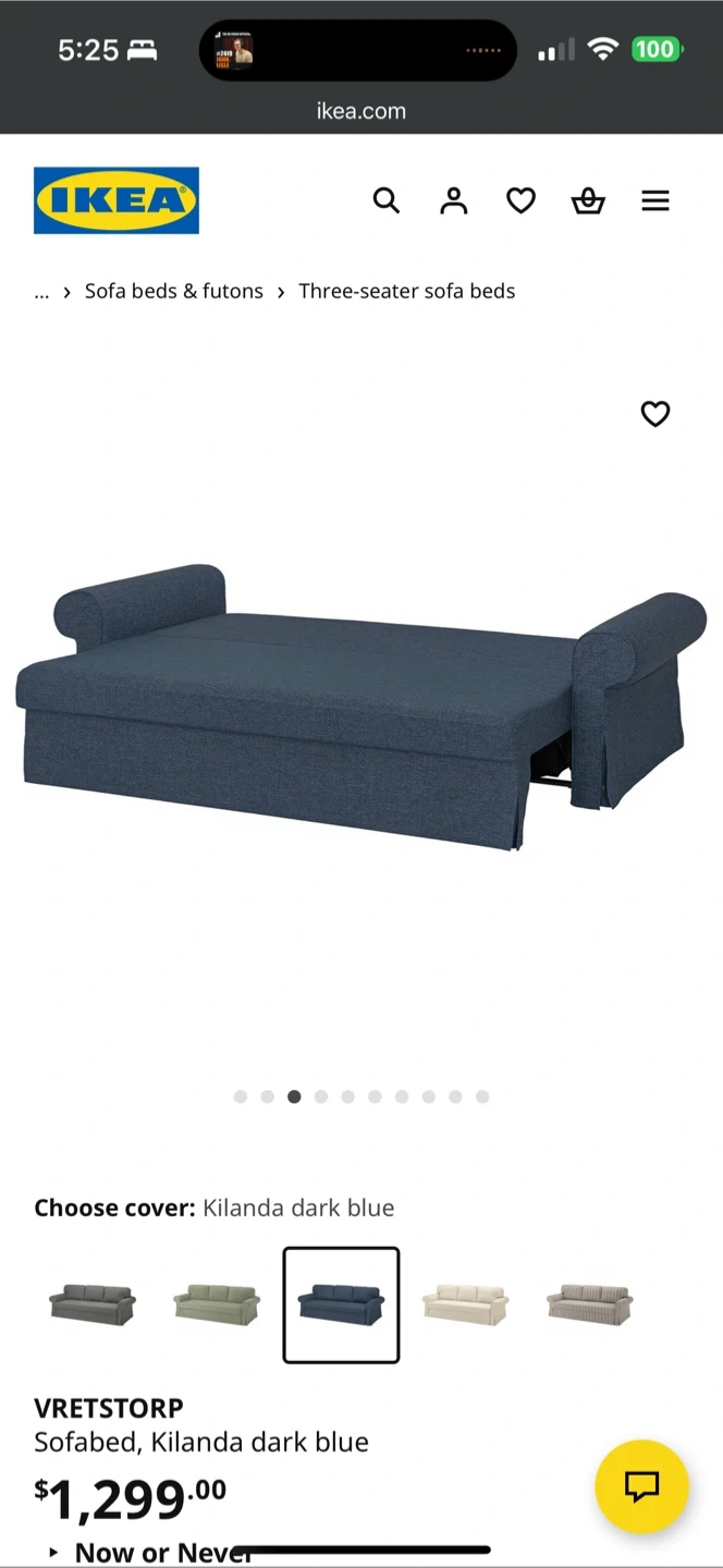 Looking to sell my IKEA VRETSTORP sofa bed with the Kilanda dark blue cover! It's in great condition and has been well taken care of. This sofa bed is super versatile and perfect for guests or small spaces.