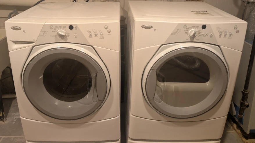 Selling a Whirlpool washer and dryer set. The washer model is WFW8300SW05 and the dryer model is YWED8300SW2. They are both in good working condition!