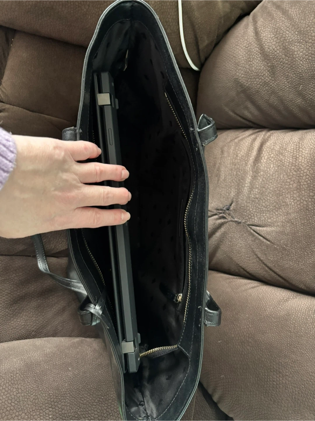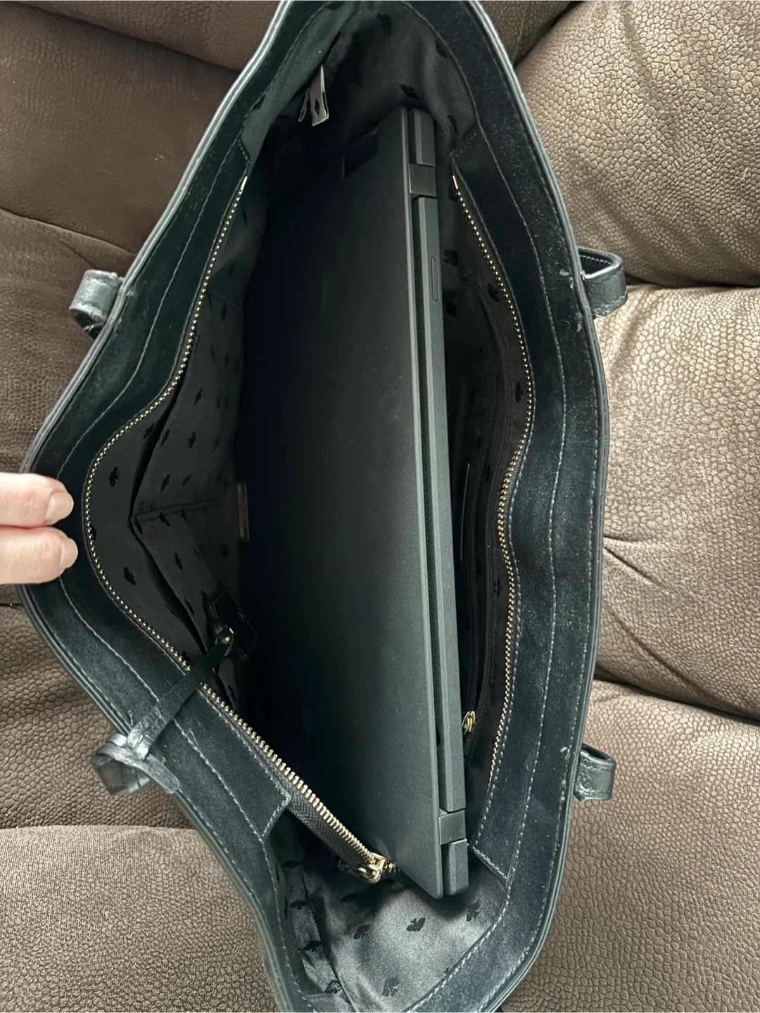 Selling a Kate Spade black tote bag! It's in great condition and perfect for carrying all your essentials. The interior has a zippered pocket for added security. It’s a stylish and practical bag for everyday use