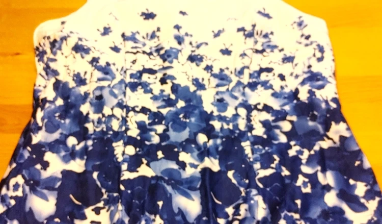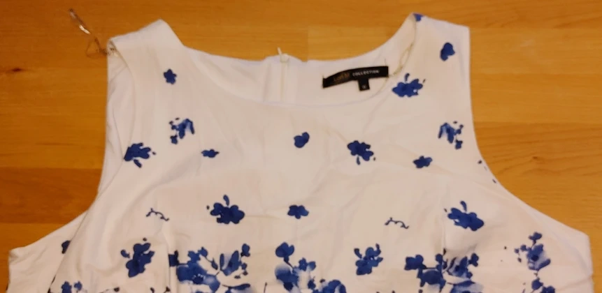Lori Michaels collection sleeveless zip up patterned dress. Has a blue and white floral pattern with 3/4 zip. Excellent condition. Like new. No rips, stains or fraying. Zipper in perfect working order. Smoke free home pick up Mt.Brydges cash only.