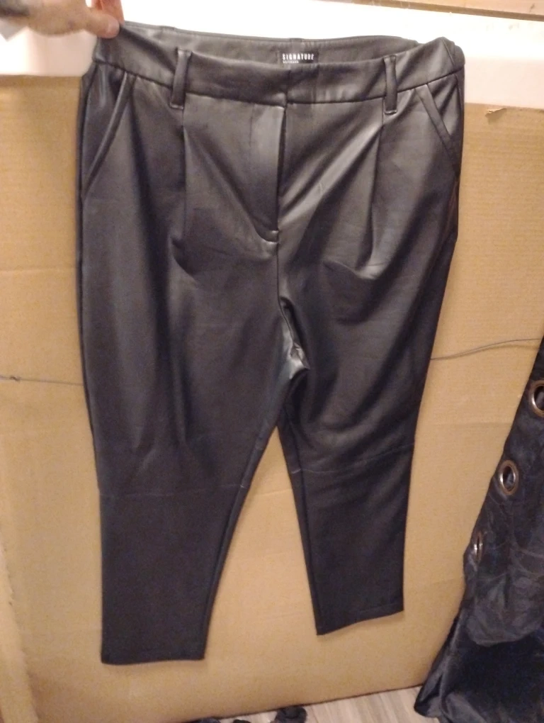 Selling a pair of Signature Reitmans faux leather pants in black. They are a size 12 and in great condition. Perfect for dressing up or down!