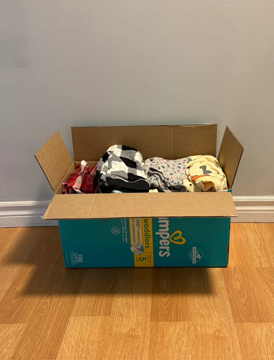 Selling a box of 9 month boy baby clothes. There is alittle bit of everything. Perfect for stocking up on essentials for your little one!