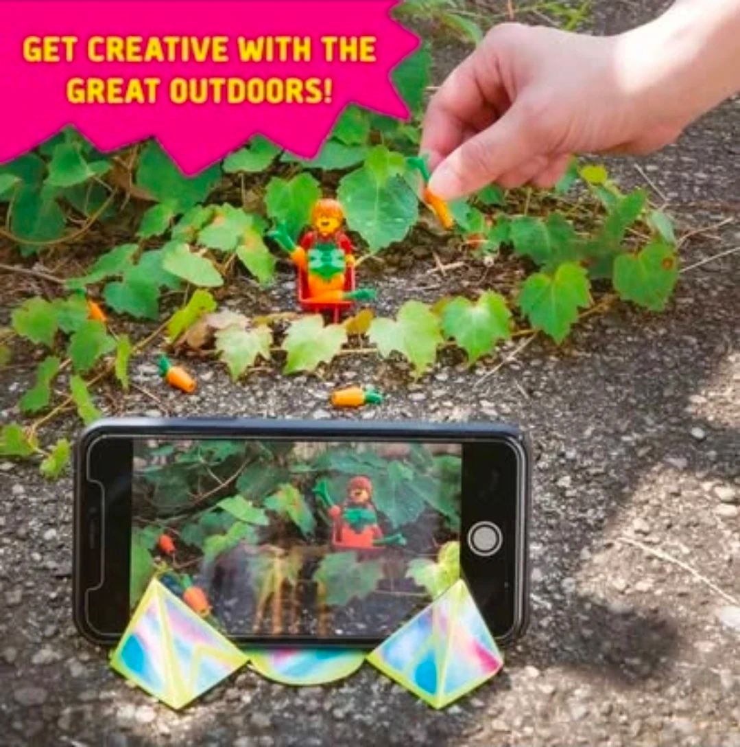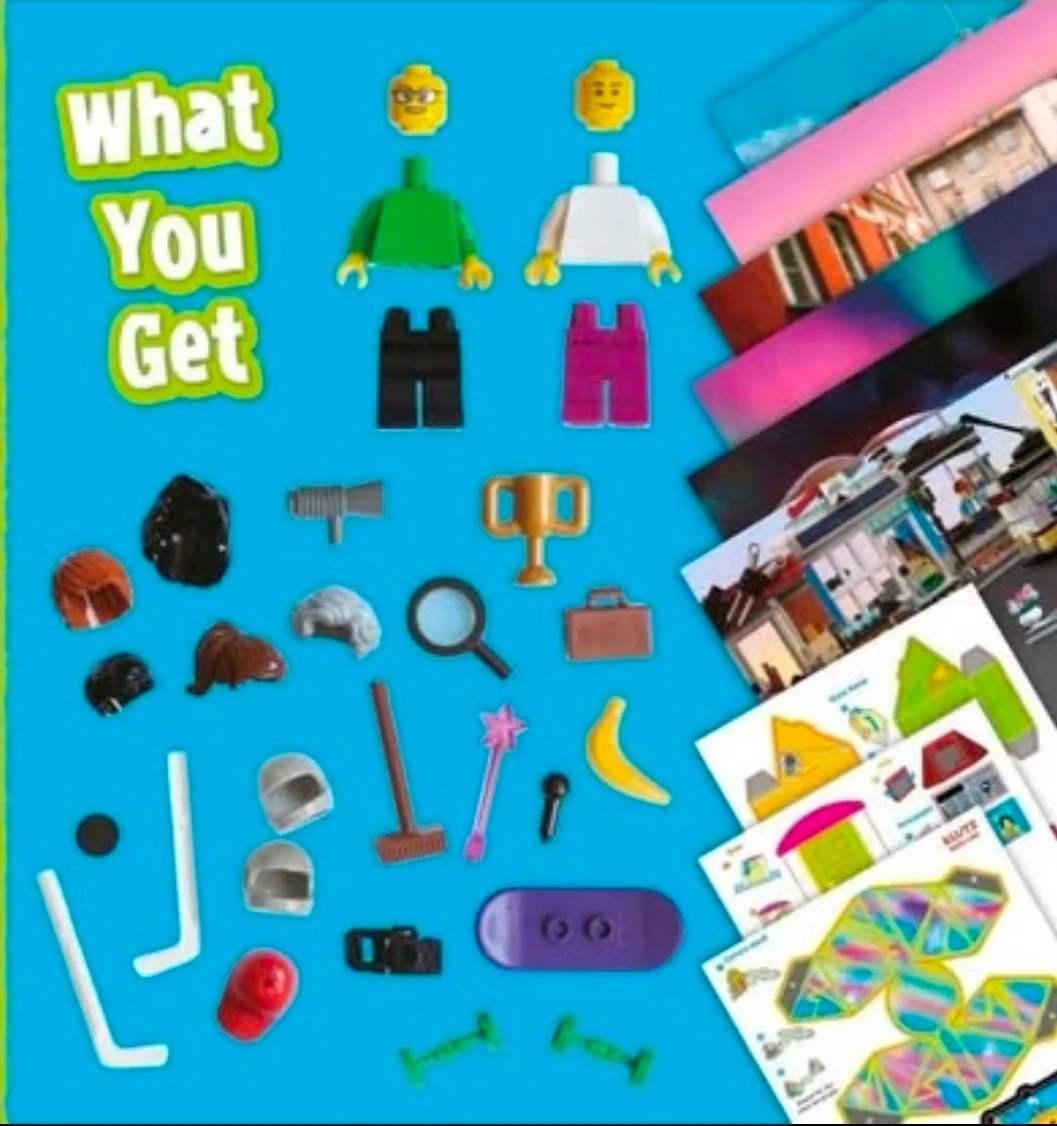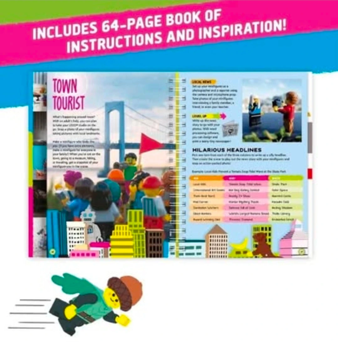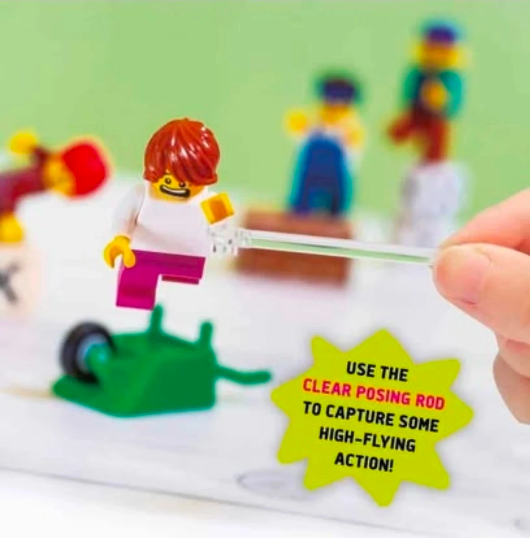 Two included minifigures are ready to strike a pose, with 30 LEGO props and accessories, including wigs, sports equipment, food, and other odds and ends. Six oversized backgrounds will help you frame your photos so you get great-looking results right away.