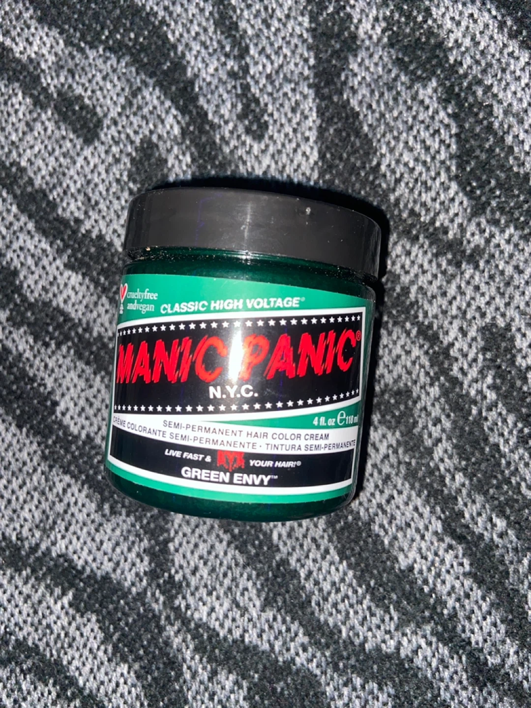 Selling a jar of Manic Panic hair dye in the Green Envy colour! It's a semi-permanent hair colour cream. The jar contains 4 fl oz (118 ml) of product. Add a vibrant splash of colour to your hair!