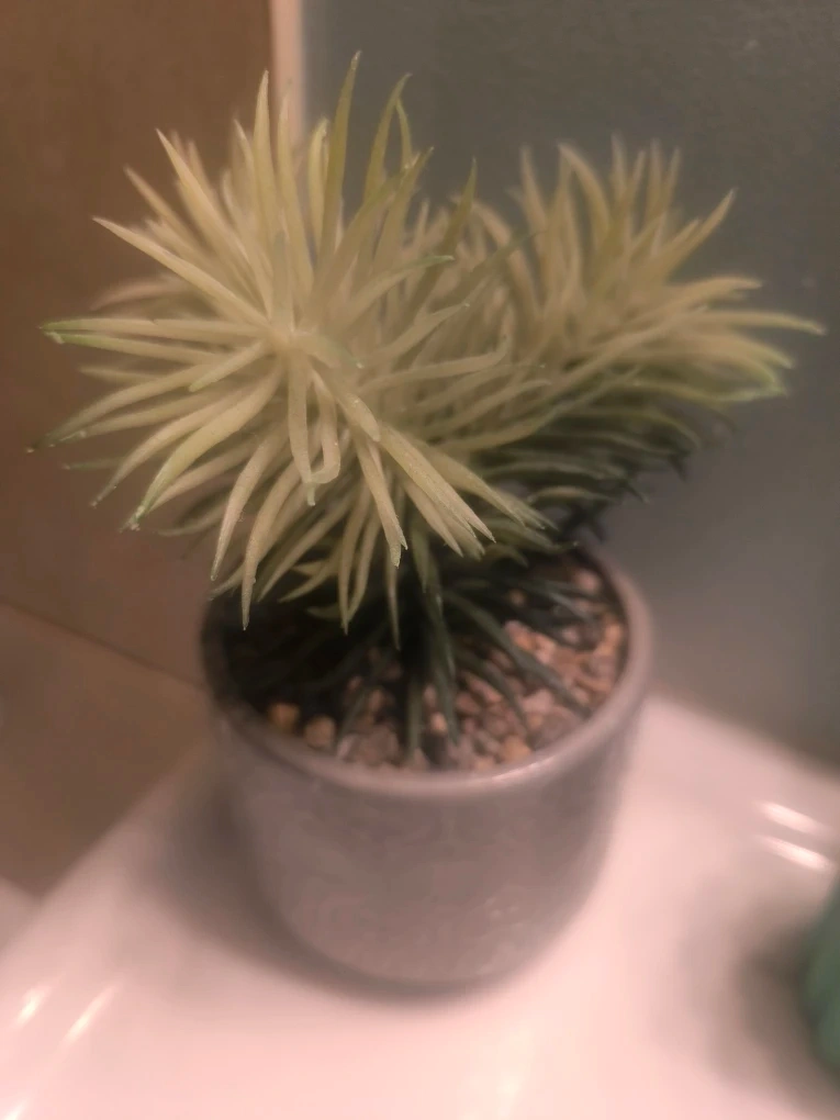 Small artificial plant. Great for adding a touch of greenery to any space! Slightly chipped in one side but not noticeable with the plant. Meet up place will be discussed with interested ppl only. Thanks
