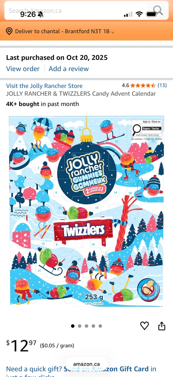Selling a Jolly Rancher & Twizzlers Candy Advent Calendar! It's a fun way to count down to a special day with gummy and candy treats. It contains 253g of candy friandise. The calendar is peanut-free. Originally bought for $12.97